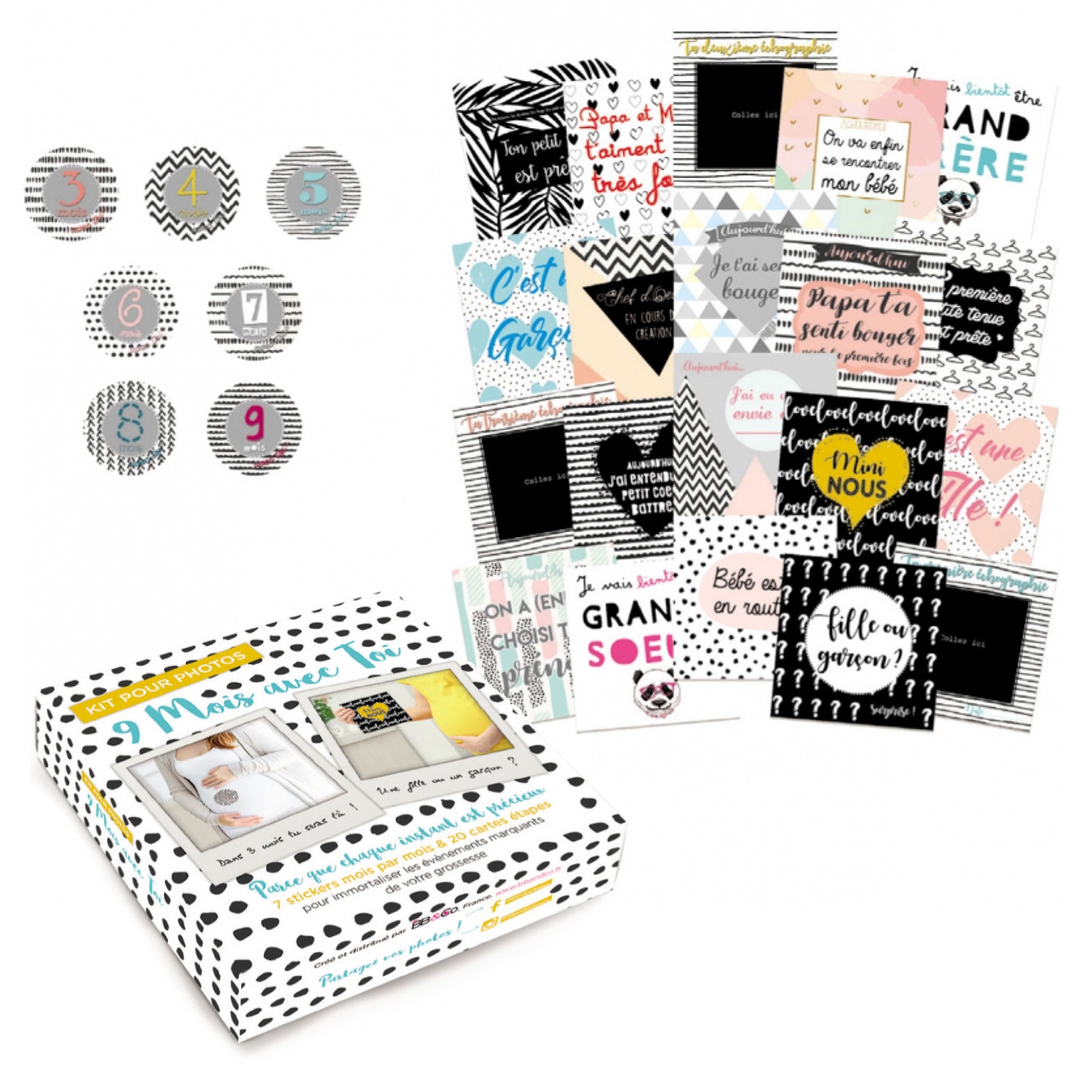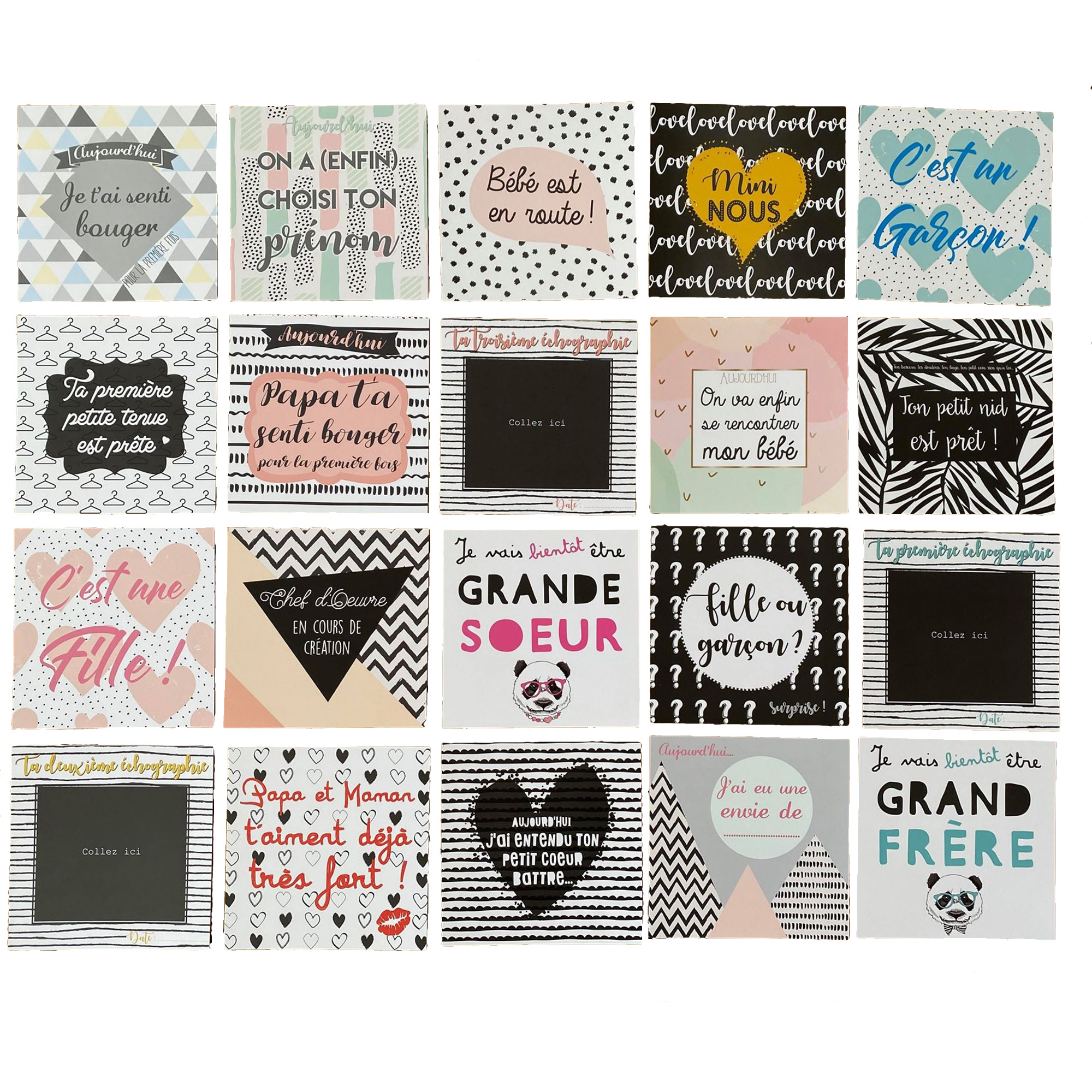 Vous trouverez aussi des cartes étapes pour les semaines, mois ou années de bébé, afin de garder un souvenir de chaque moment de sa vie et de voir l'évolution. Disponible dans notre boutique en kit pour photo une fille, pour un garçon ou pour la grossesse!
