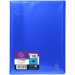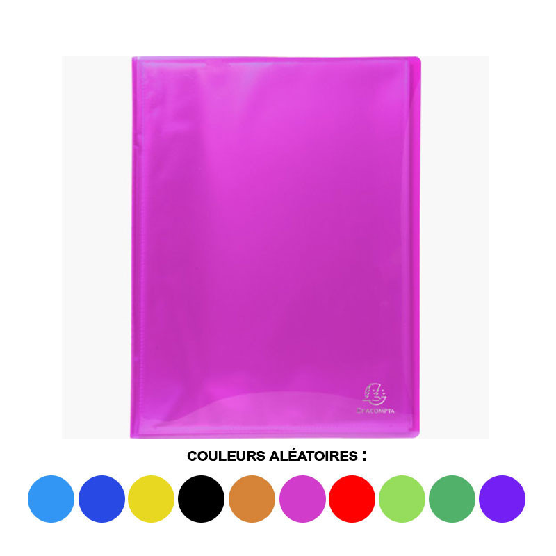 EXACOMPTA - Protège-documents "Iderama" - A4 - 120 vues - Assortis. En complément de la gamme en carte, Iderama PP souffle un vrai vent de nouveauté sur le marché du classement plastique. Iderama PP est la première gamme à présenter une telle brillance glacée sur une semi-transparente, une palette de couleurs étonnante, en lien avec la gamme en carte, et des produits d'une extrême qualité fabriqués en France. Couverture résistante et pochettes cristal lisse haute transparence. Couverture polypro souple et opaque : 500 microns, Pochettes cristal transparent, Dimensions : (L)240 x (H)320 mm, format à classer A4 120 vues = 60 pochettes, Assorti dans les couleurs : bleu clair, bleu foncé, jaune, orange, noir, rouge, rose, vert anis, vert foncé, violet. En paquet de 8 pièces.