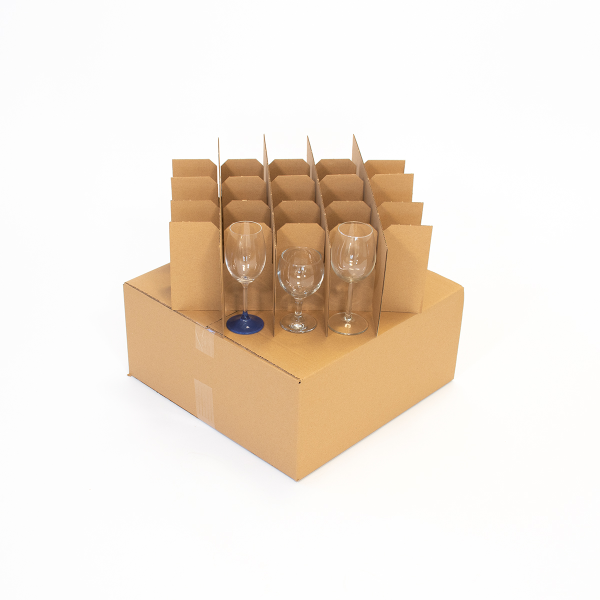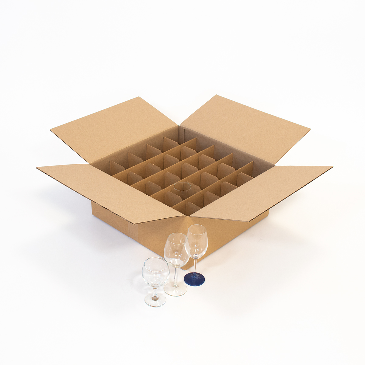 Carton spécial vaisselle pour le rangement des verres. Très utile pour ranger les verres rapidement à l'abri des chocs et de la poussière lors de votre déménagement. Ce carton peut aussi servir de boîte de stockage que vous pourrez empiler. Ce produit est constitué d'un carton et d'un croisillon avec 25 emplacements. Dimensions du carton : 45 x 45 x 20 cm. Dimensions des verres : Hauteur maximum 20 cm - Diamètre 9 cm.
