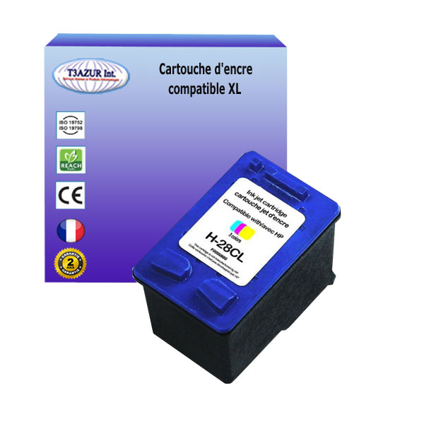 Remplacent les HP 28 (C8728AE) - Couleur - Volume: 18ml (Haute Capacité) avec un rendement de 5% , repondent à toutes les normes européennes ISO 9001/14001, STMC, CE, ROHS - Marque T3AZUR