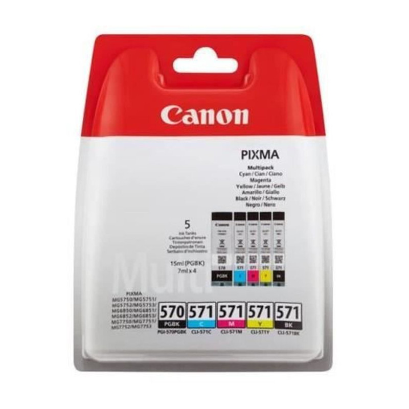 5 Cartouches d'encre d'origine : 1 PGI-570 Noir, 4 CLI-571 Couleur (Cyan, Magenta, Jaune, Noir)