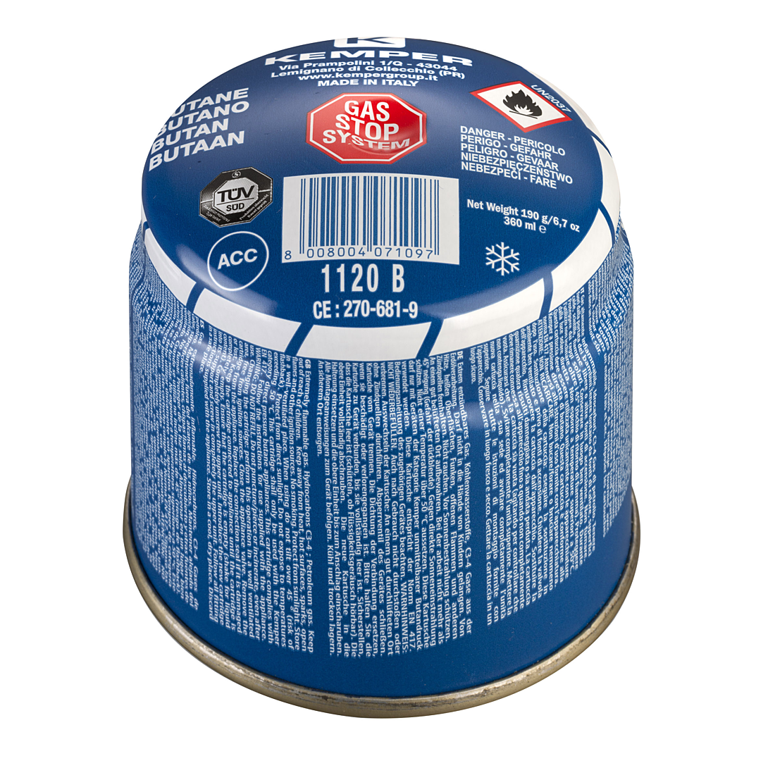 Cartouche Butane percable 190gr universelle avec système de sécurité "Stop Gaz".