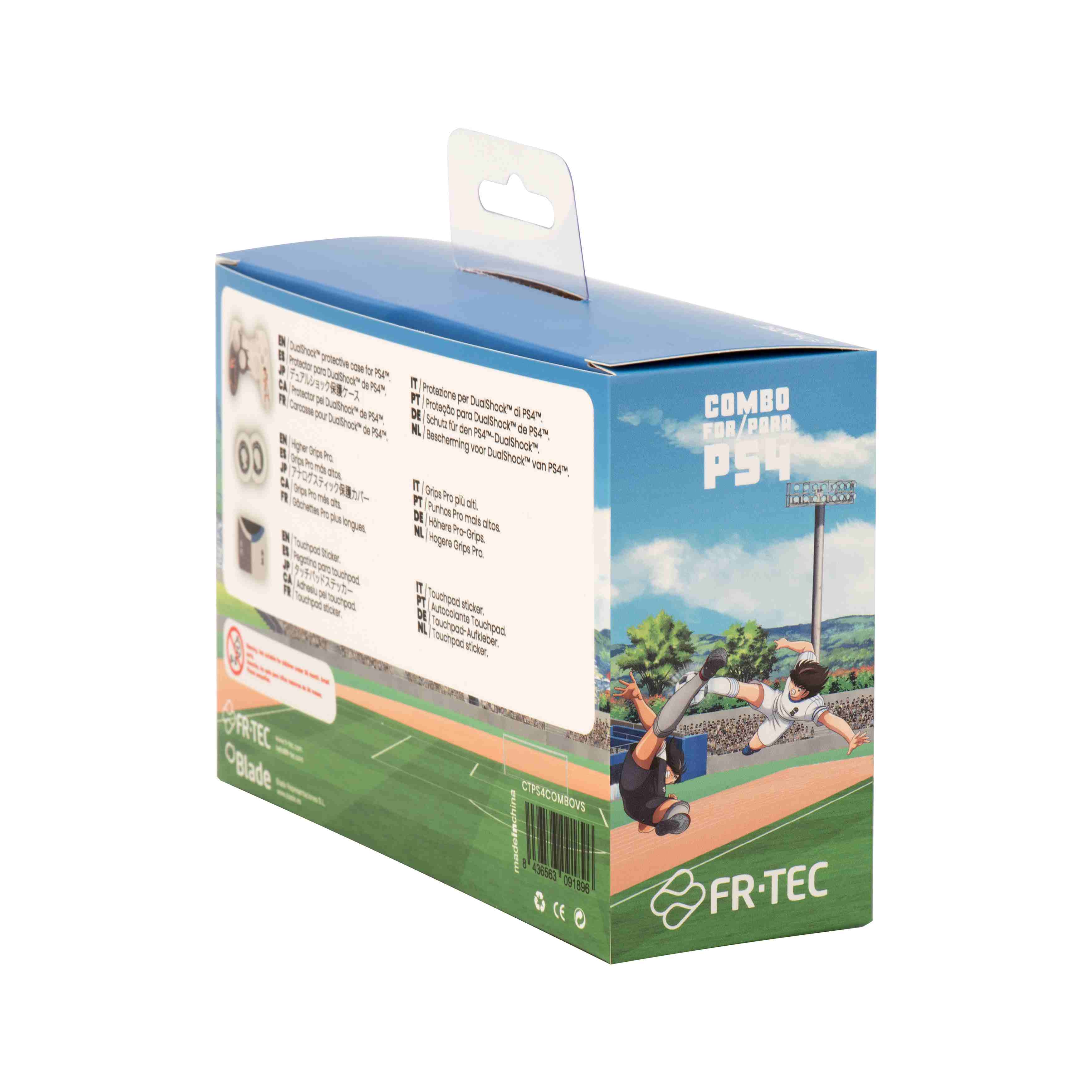 Un pack combo pour votre PS4. Le pack combo Captain Tsubasa comprend une couverture pour votre contrôleur qui protège contre les rayures, les bosses et la saleté. La couverture est imprimée avec le capitaine Tsubasa et possède une licence officielle de capitaine Tsubasa. Il existe également des poignées de capitaine Tsubasa, ce qui garantit que vous avez plus d'adhérence pendant le jeu. Caractéristiques: Cas pour votre contrôleur Prise de pouce incluse Autocollant pour le pavé tactile. Licence officielle du capitaine Tsubasa.