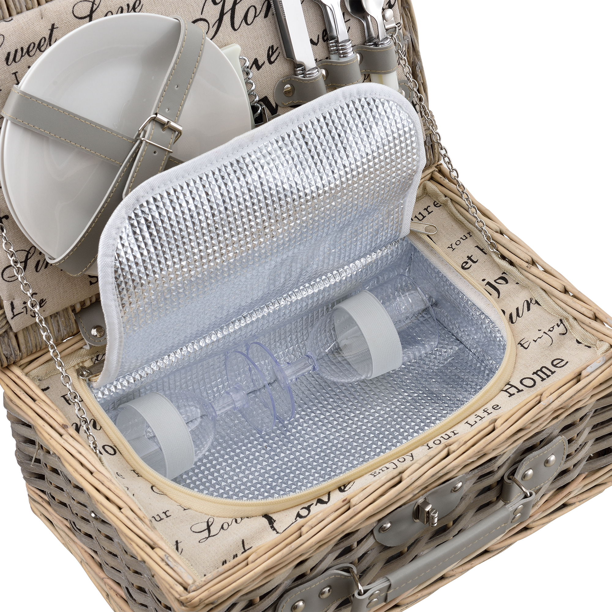 | Libellé | [casa.pro] Panier de pique-nique pour 2 personnes Incl. vaisselle, couverts, sac isotherme et verres - gris |