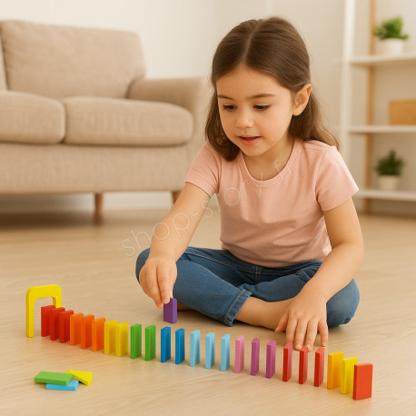 Avec ses 123 dominos en bois colorés, ce coffret ouvre la porte à un véritable monde de construction où chaque enfant peut exprimer pleinement sa créativité. Loin d'être un simple jeu de pièces alignées, il invite les enfants à imaginer des circuits complexes : lignes droites, courbes, spirales, ponts, obstacles, parcours en plusieurs niveaux. Chaque création devient une œuvre unique, une scène miniature où l'enfant peut inventer des scénarios et orchestrer des spectacles visuels.