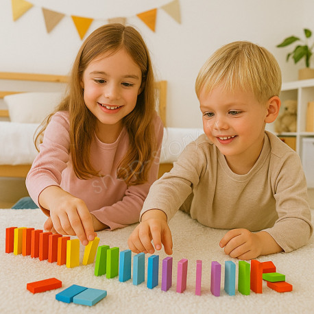 Ce jeu de dominos offre bien plus qu'un simple amusement : il constitue une expérience éducative complète. Lorsqu'un enfant place soigneusement chaque pièce, il développe sa motricité fine, sa coordination œil-main et améliore sa précision gestuelle. Construire un parcours demande réflexion : où positionner les pièces ? Quelle distance optimale choisir ? Comment garantir une chute fluide ?