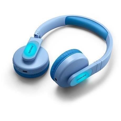 Laissez-les exprimer leur style avec ce casque supra-aural robuste et flexible ! Les coques sont dotées d'inserts lumineux colorés, tandis que le volume est limité à 85 dB. Les parents peuvent contrôler le volume et le temps d'utilisation via l'application Philips Headphones.