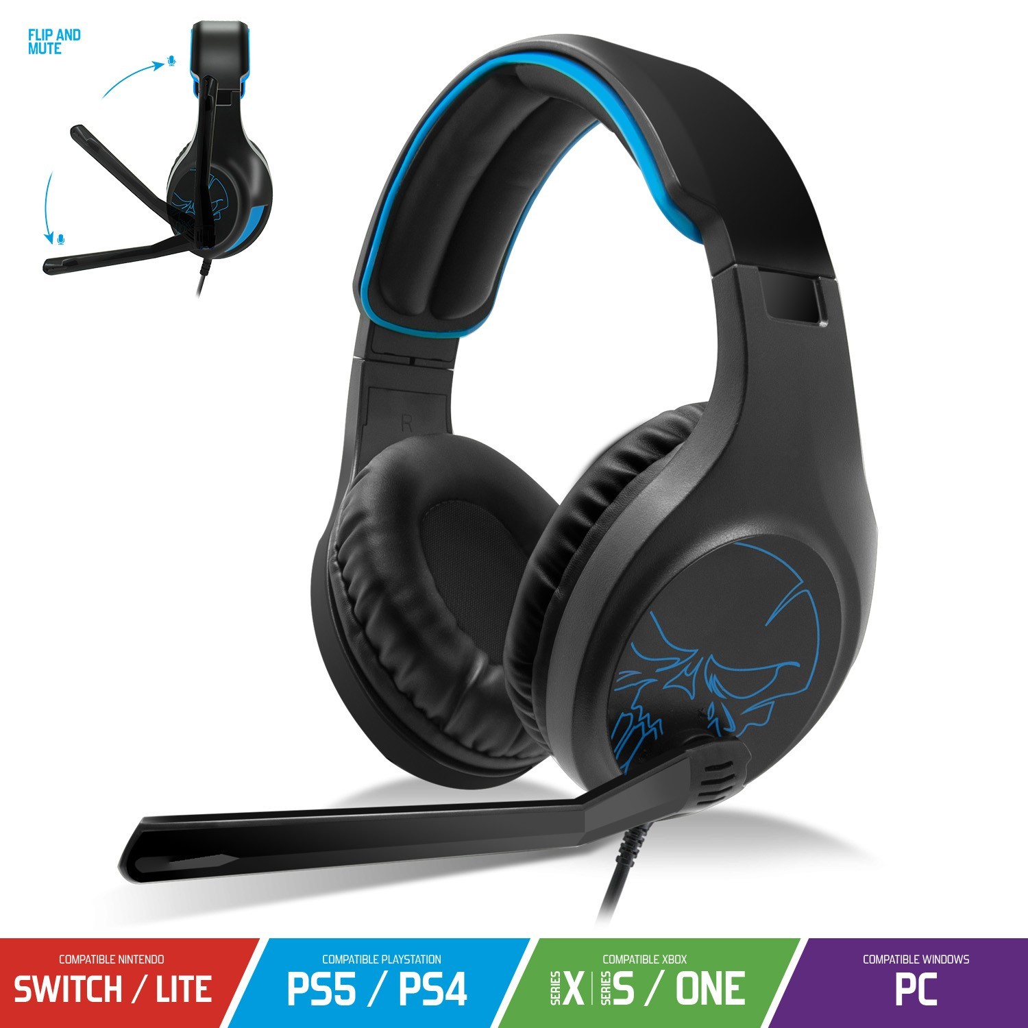 Baissez le micro pour communiquer avec votre Team. Télécommande intégrée dans l'écouteur gauche pour régler facilement le volume sonore. Le câble principal, d'une longueur d'un mettre se branche directement sur votre manette PS4 / PS5, XBOX ONE et XBOX SERIE ou sur votre console Switch. Pour une compatibilité PC, le casque est fourni avec une rallonge double jack 3,5 mm.