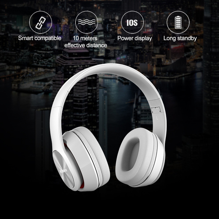 Libellé Casque Audio Sans Fil Bluetooth MP3 Batterie Longue Durée FM Micro SD Blanc YONIS