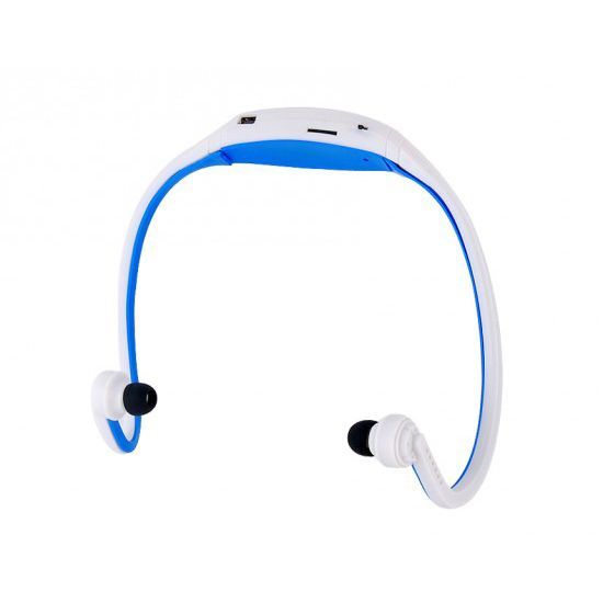 Casque Course À Pied Jogging Sportif Sans Fil Lecteur MP3 Radio Fm Blanc Et Bleu - YONIS
