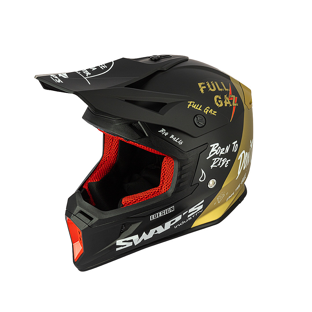 Nouveau casque cross californien SWAP’S « BLUR » ne laissera personne indifférent, son design, sa forme et ses couleurs sont directement issus des championnats les plus relevés au monde : le Supercross et le Motocross US.