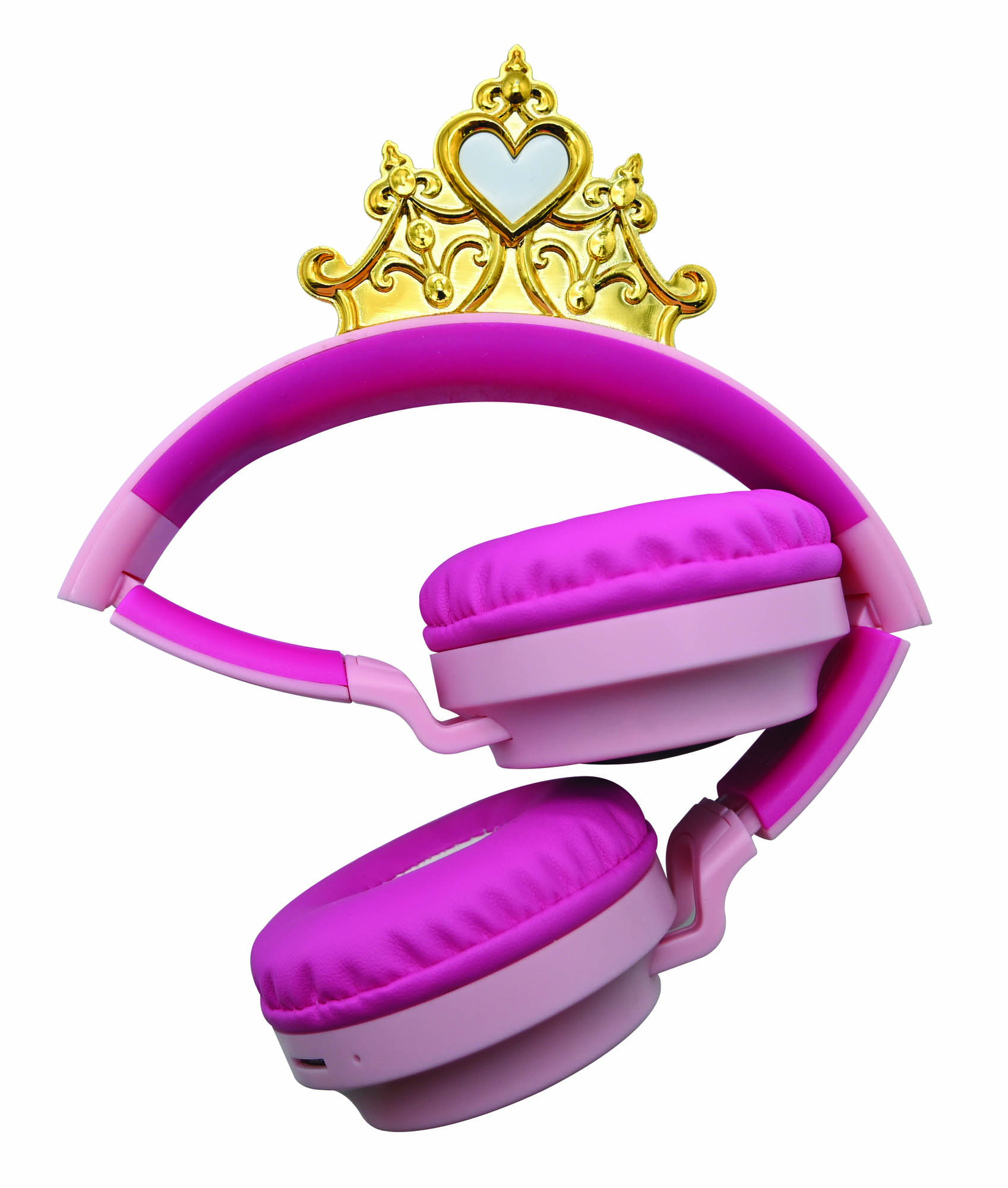 "Magnifique Casque en 3D avec la tiare des princesses de Disney, sans fil, rechargeable et lumineux � Casque audio 2-en-1 pour �couter votre musique sans fil en Bluetooth 5.0 (jusqu'� 10m de port�e) ou branch� avec le c�ble aux in amovible (inclus). � Avec microphone int�gr�, boutons de lecture/pause, mode et volume pour contr�ler votre musique et r�pondre aux appels t�l�phoniques. � Multi-connectivit� avec entr�e auxiliaire et emplacement pour carte SD/TF. � Compatible avec tous les smartphones, tablettes, lecteurs audio et vid�o �quip�s de Bluetooth ou avec une sortie jack audio 3,5 mm pour les casques. � Batterie rechargeable : plusieurs heures d'autonomie en mode sans fil. Temps de lecture illimit� en mode c�ble. � Robuste, l�ger et pliable, il se glisse dans un sac et peut �tre emport� partout : � l'�cole, en voyage... � R�glable, il s'adapte � toutes les tailles de t�te : adultes, ados, enfants, gar�ons, filles...il est super confortable pour tous ! * Son limit� � 85 dB pour prot�ger les oreilles."