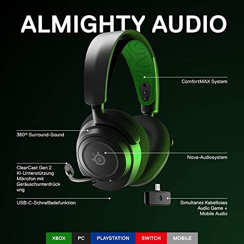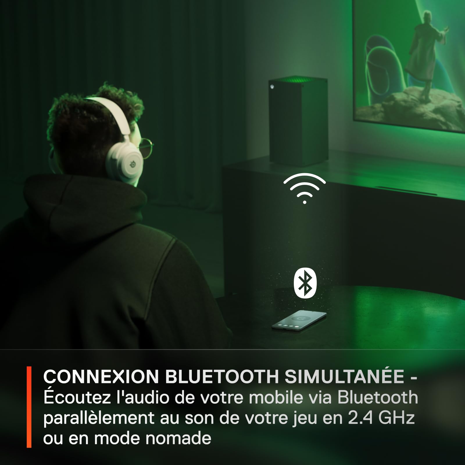 Nouveaux haut-parleurs personnalisés pour le son caractéristique d'Arctis. Le sans fil partout. La clé USB-C portable en fait le choix idéal pour le jeu sans fil à la maison comme en déplacement. La fonction BT simultanée offre en outre la possibilité de mélanger 2 sources. Prend en charge plusieurs dongles pour que vous n'ayez pas à passer d'un système à l'autre. - Sans fil 2,4 GHz sans perte. - Autonomie de 24 heures. - Microphone ClearCast Gen 2 entièrement rétractable. - Système ComfortMAX avec réglage en hauteur. - Logiciel audio Sonar (PC).