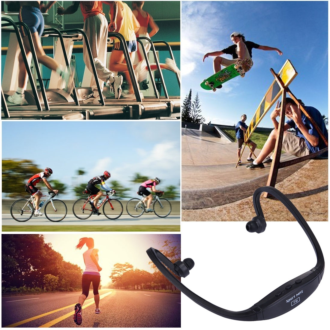 Casque MP3 Sport Sans Fil Lecteur Musique Micro SD Running Vélo Vtt Noir 8 Go YONIS
