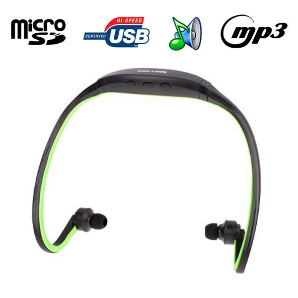 Casque MP3 Sport Sans Fil Lecteur Musique Micro SD Running Vtt Wma Wav Noir Vert YONIS