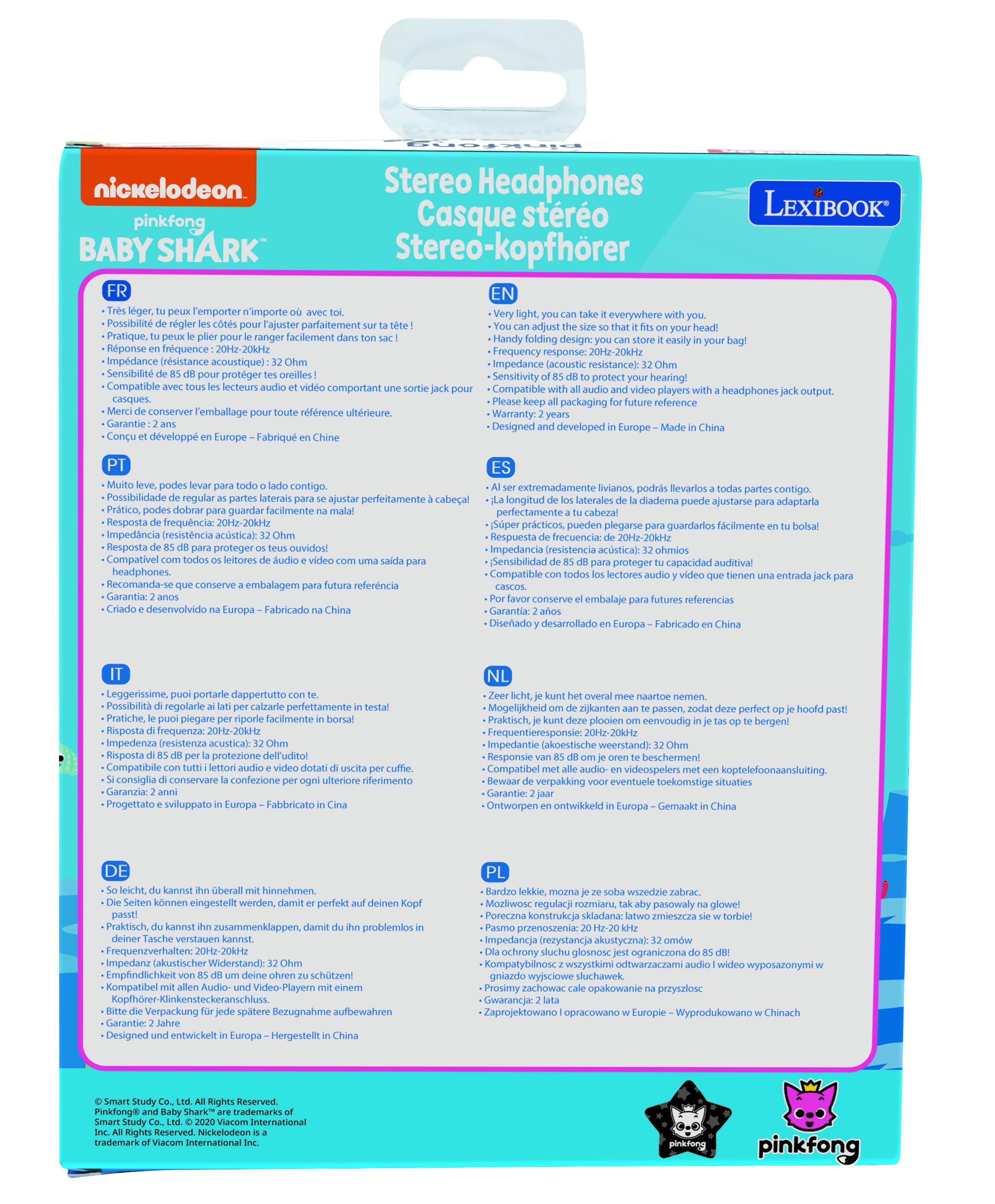 | Libellé | Casque stéréo filaire pliable Baby Shark avec limitation de volume d'écoute |