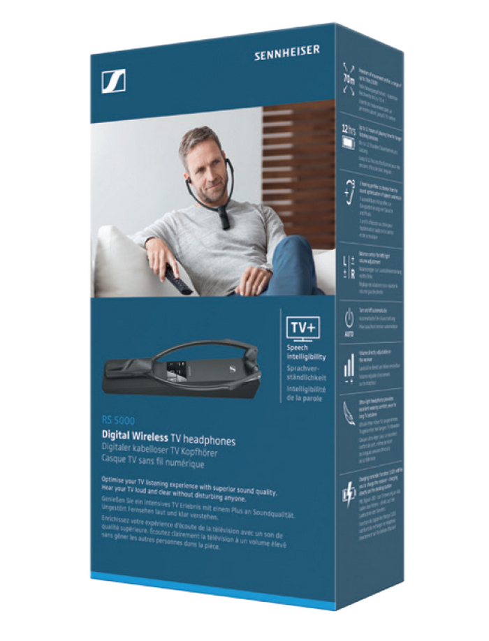 rs5000 - casque tv sans fil numérique noir - Casque tv sans fil numérique Sennheiser RS5000 pour écouter la télévision. Optimisez votre expérience d'écoute TV avec une qualité sonore supérieure. Entendez distinctement la télévision sans déranger personne.Liberté de mouvement dans un rayon pouvant atteindre 70 mètres.3 profils d'écoute au choix pour l'optimisation du son de la parole et de la musique.Activation/désactivation automatique.Commande de balance pour le réglage de volume gauche/droit.Volume réglable directement sur le récepteur.La fonction de rappel de charge (LED) vous indique quand charger le récepteur ? recharge directe sur la station d'accueil.La fonction d'intelligibilité de la parole réduit le fond sonore de la télévision tout en faisant ressortir les voix.Aucune pression sur les oreilles ni sur les tempes de l'utilisateur - Idéal pour les porteurs de lunettes.Installation rapide et facile - compatible avec tous les téléviseurs à sortie audio analogique ou numérique.Élégante station d'accueil horizontale qui tient facile.