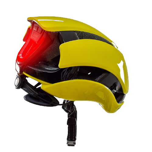Casque vélo route taille M-L avec fonctions intelligentes CLIGNOTANT et FREINAGE. Grâce à sa puce ST32 made in US et son gyroscope allemand BOSCH, ces fonctions sont assurées automatiquement et sans contrôle à distance. Grand éclairage arrière en 'V' à LEDs. Très léger 370g, waterproof IP55. Autonomie 8 heures, rechargeable via câble USB fourni, piles interchangeables en fin de vie. Couleur jaune.