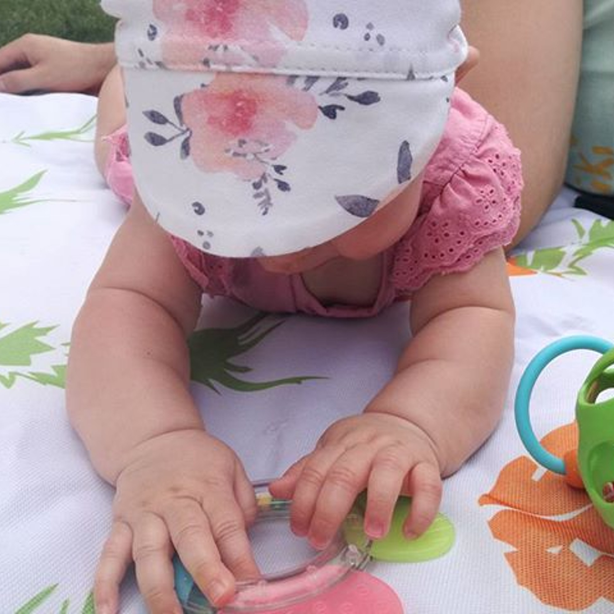 Le joli bandana Flora va vous faire craquer! Parfait pour le printemps et l'été, le bandana/casquette pour bébé protège votre enfant du soleil et du vent lors de vos sorties, ou dans la voiture.