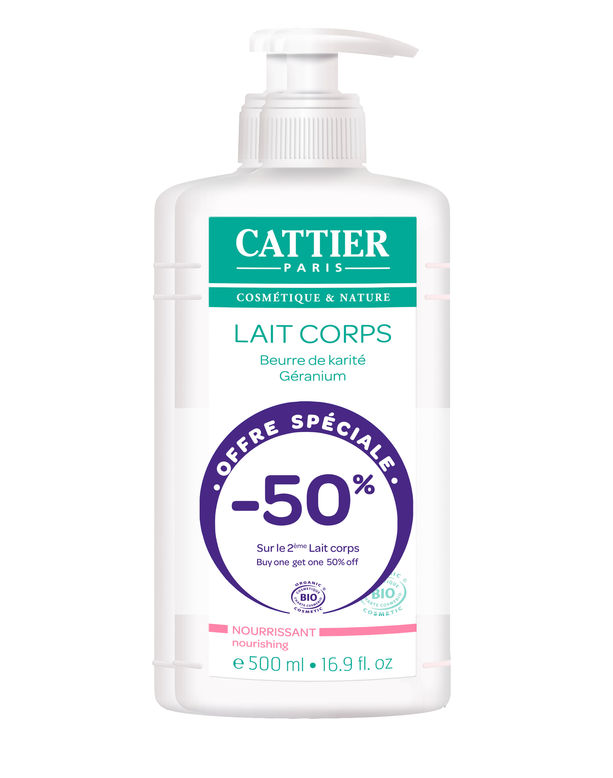 Cattier lot de 2 Laits corps Karité / Géranium 500ml -50% sur le 2ème