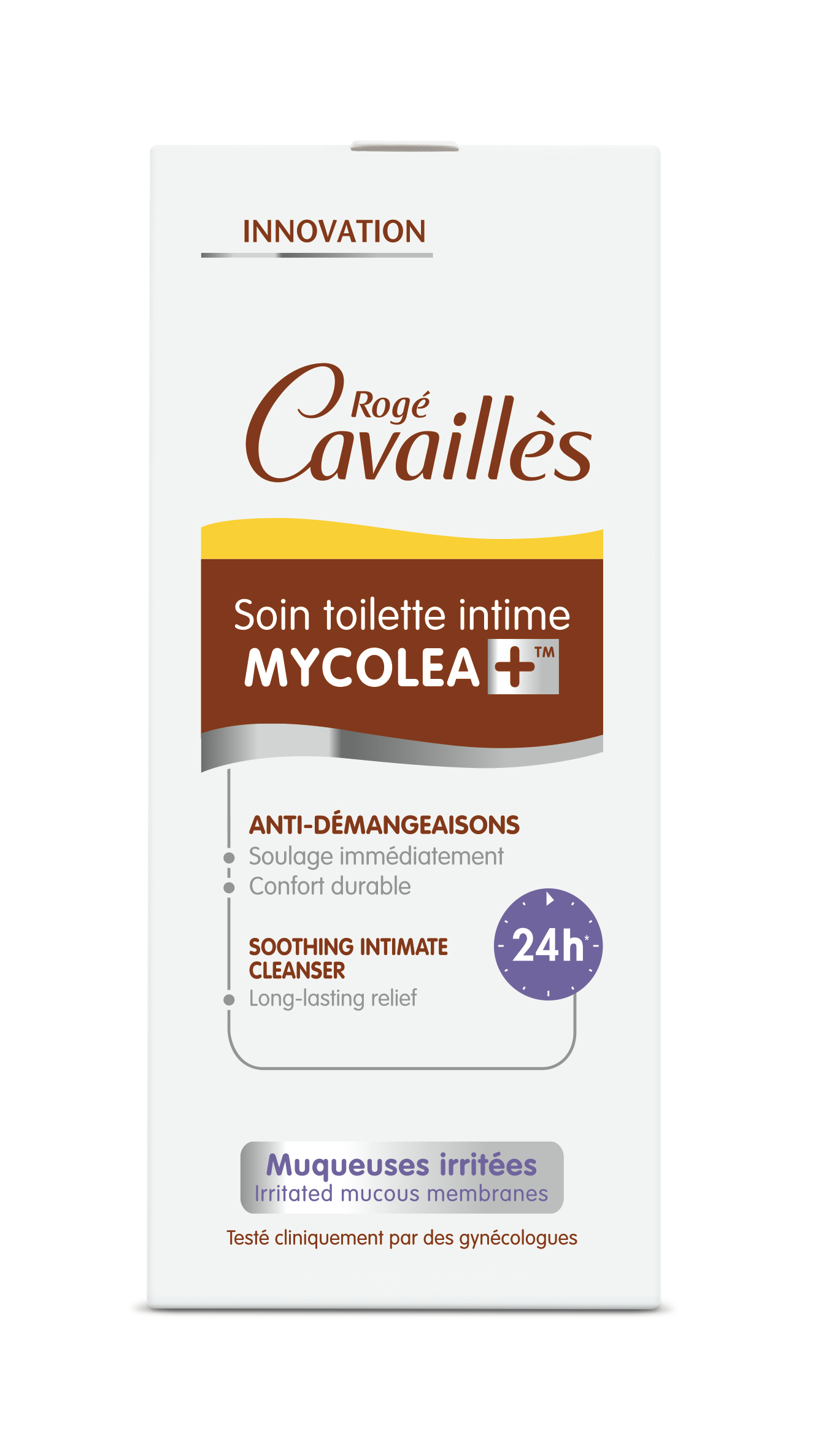 Un soulagement immédiat et jusqu’à 24 heures des démangeaisons intimes ! Développé avec des gynécologues, le soin toilette intime Mycolea+TM procure une action immédiate et durable jusqu'à 24 heures* pour soulager des démangeaisons intimes. Avec son complexe exclusif (anti-fongique d’origine naturelle et calendula encapsulé), il aide à calmer efficacement les muqueuses irritées et à rétablir le bien-être intime. *Etude clinique, réalisée sur 22 femmes ayant les muqueuses irritées : auto-évaluation, déclarant un soulagement immédiat et jusqu’à 24 heures après application, après 7 jours d’utilisation.