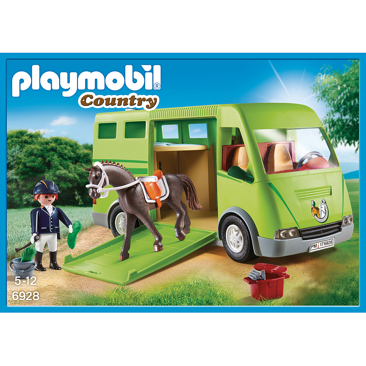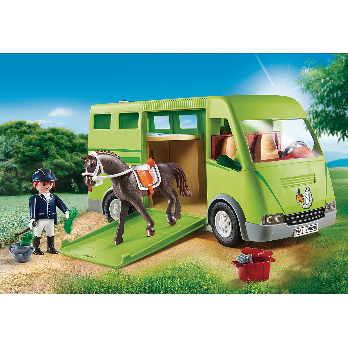 Contient un cavalier et un cheval. Ce dernier doit être transporté dans le van aujourd'hui. Pour cela, il suffit de rabattre la rampe latérale pour permettre aux chevaux de montrer dans le van. Ce camion a quelque chose de louche pour les animaux mais, avec un peu de patience, ils finissent par s'y aventurer. Voilà ! Ce n'était pas si compliqué !