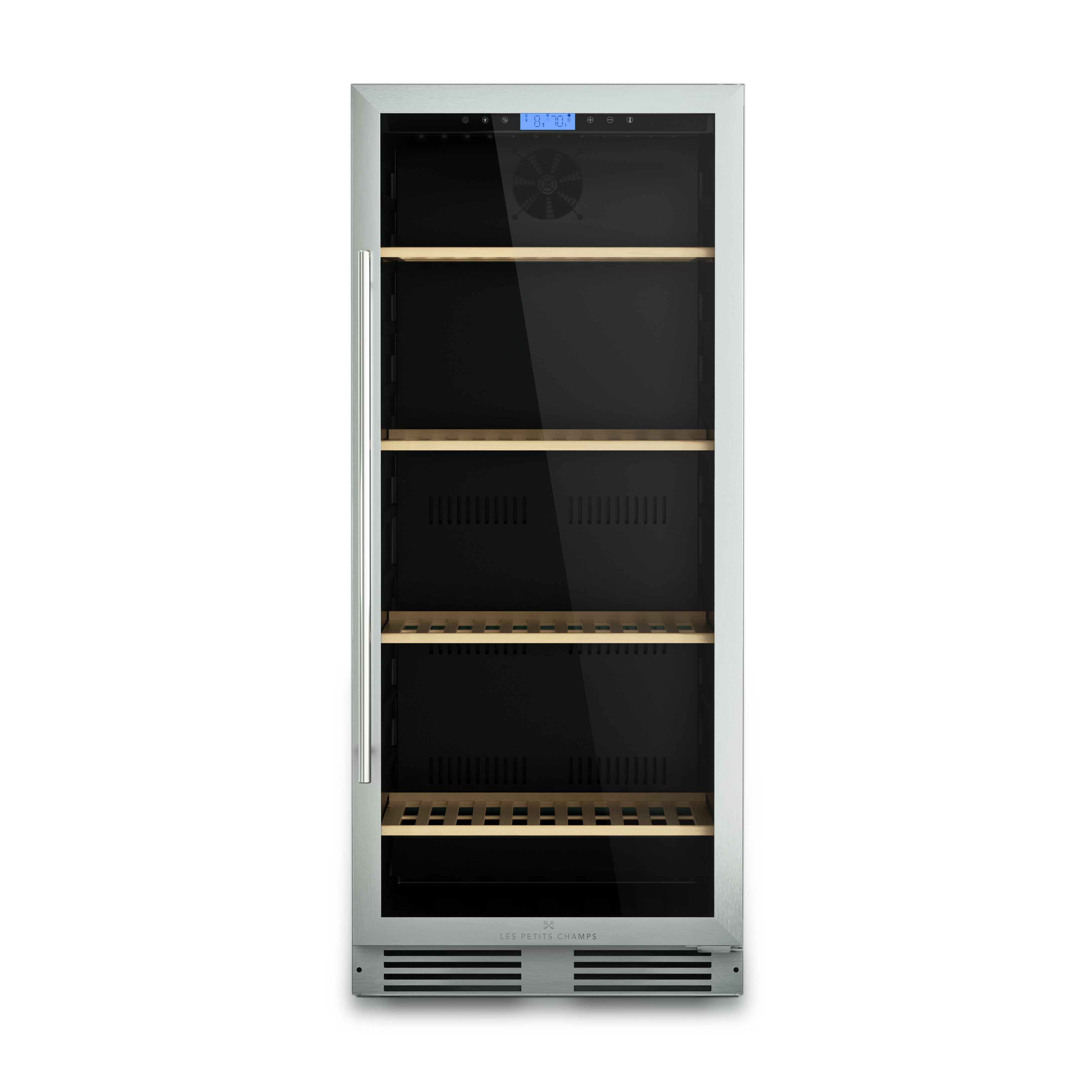 Sa vitre teintée ainsi que son éclairage LED vous permet de voir vos bouteilles tout en les gardant à l’abri de la lumière directe et des UV.