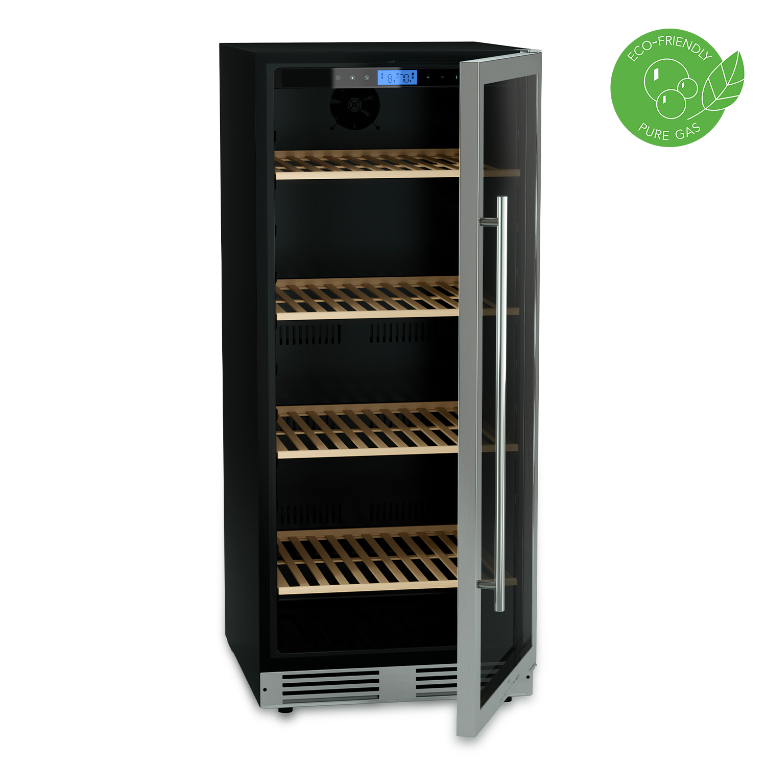 Afin d’exalter tous les arômes lors de votre dégustation, le vin exige une température de service précise que vous pouvez régler grâce à l’affichage électronique entre 5°C et 22°C. Son système anti-vibration ainsi que sa température stable, permet à votre vin d’arriver à maturité dans des conditions optimales.