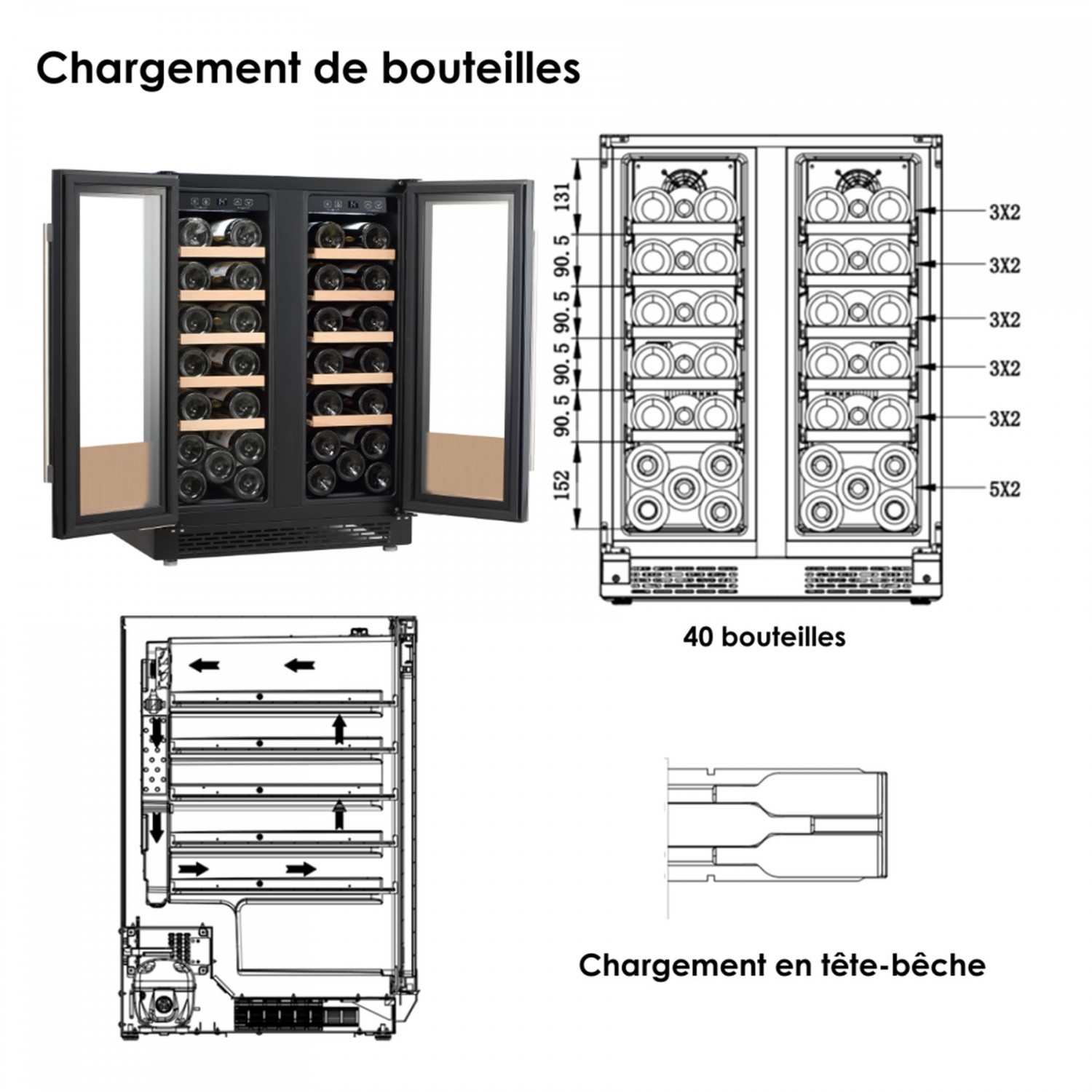 - Capacité de 40 Bouteilles - Double porte Largeur 59,5 cm