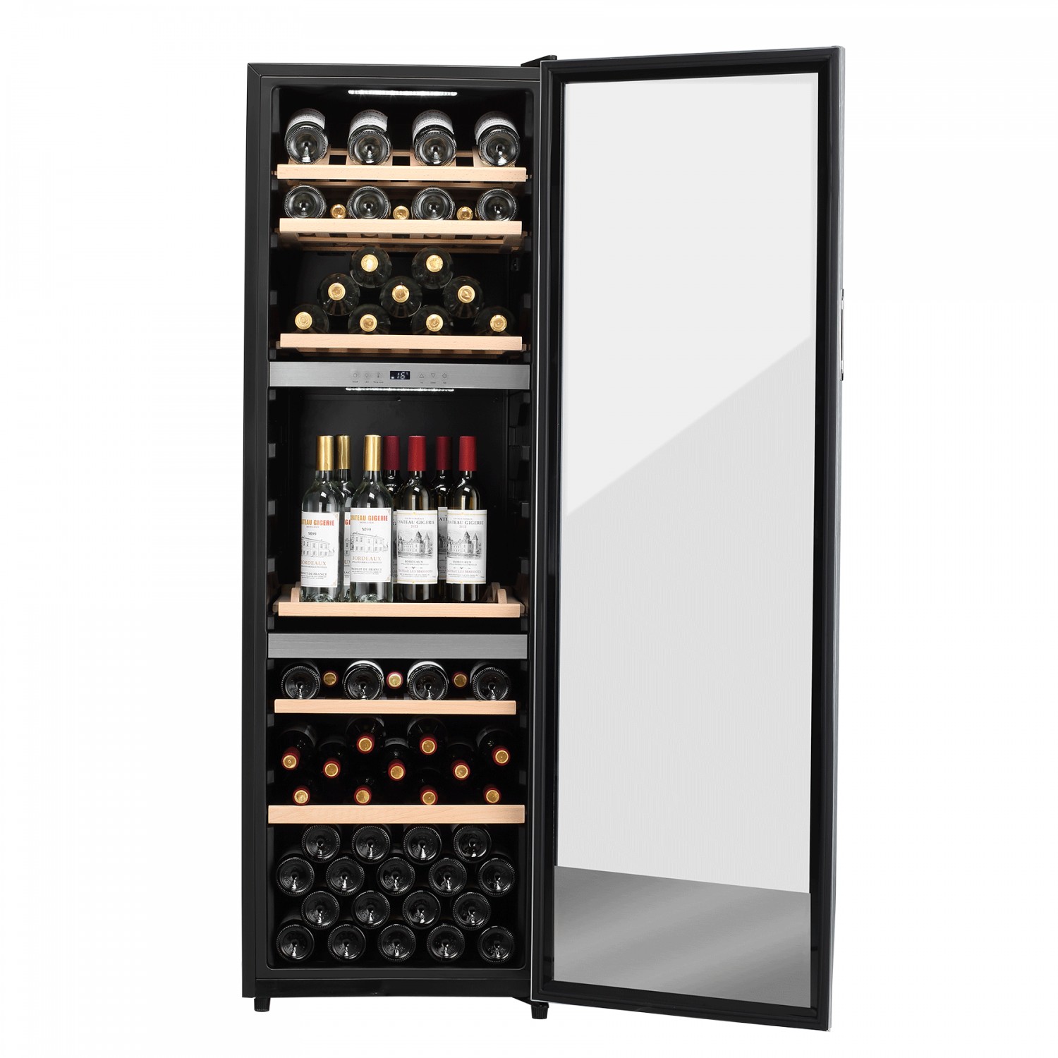 La technologie avancée du compresseur et les quatre étagères en bois de première qualité travaillent ensemble pour minimiser les fluctuations de température et les vibrations, garantissant des conditions de vieillissement optimales tout en maximisant l'espace intérieur avec une finition luxueuse.