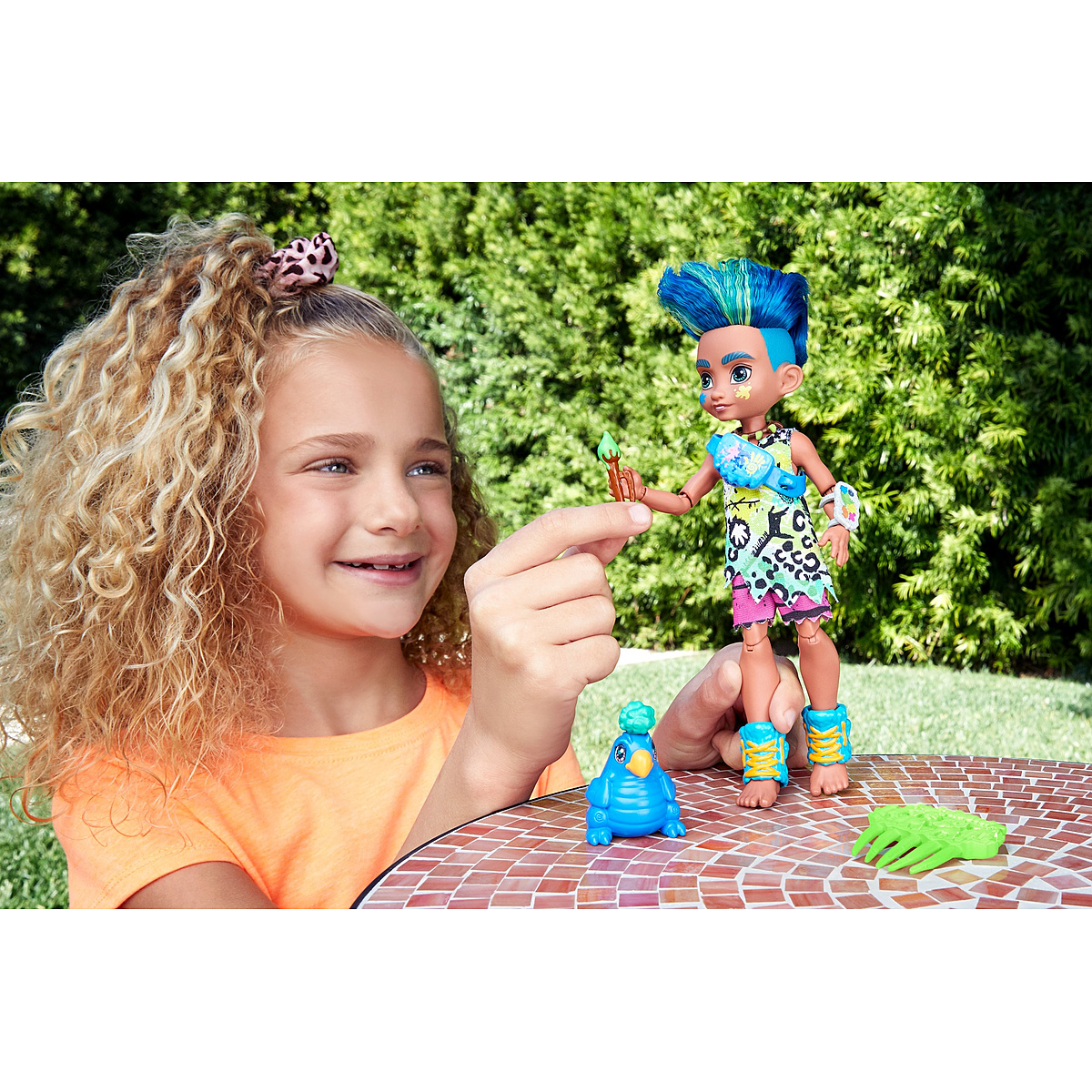 Découvrez Cave Club, un groupe denfants de la Préhistoire à la personnalité décoiffante et très en avance sur leur temps ! Slate, accompagné de son animal de compagnie préhistorique, Taggy, adore peindre ! Slate porte une tunique fluo avec taches de peinture et un short coloré à rayures. Inclut 1 peigne et des outils pour peindre : fixez la palette à son poignet pour quil puisse peindre où il veut ! Poupée articulée au niveau des coudes, des poignets et des genoux.