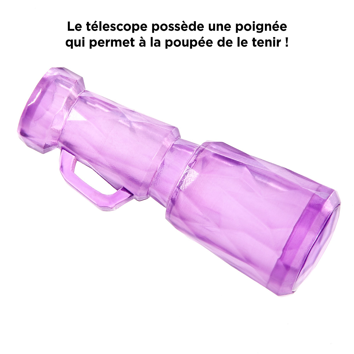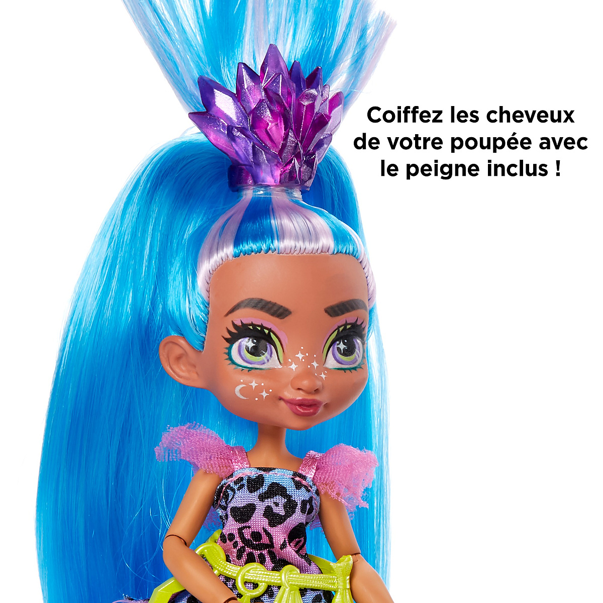 Découvrez Cave Club, un groupe denfants de la Préhistoire à la personnalité décoiffante et très en avance sur leur temps ! Grâce à son mystérieux télescope, Tella, accompagnée de son animal de compagnie, Hunch, un canidé de la Préhistoire, peut entrevoir lavenir. Elle porte une robe à imprimé céleste et bord à fourrure, ainsi quune attache pour cheveux en forme de « cristal ». Inclut 1 peigne des cavernes et 1 télescope. Poupée articulée au niveau des coudes, des poignets et des genoux.