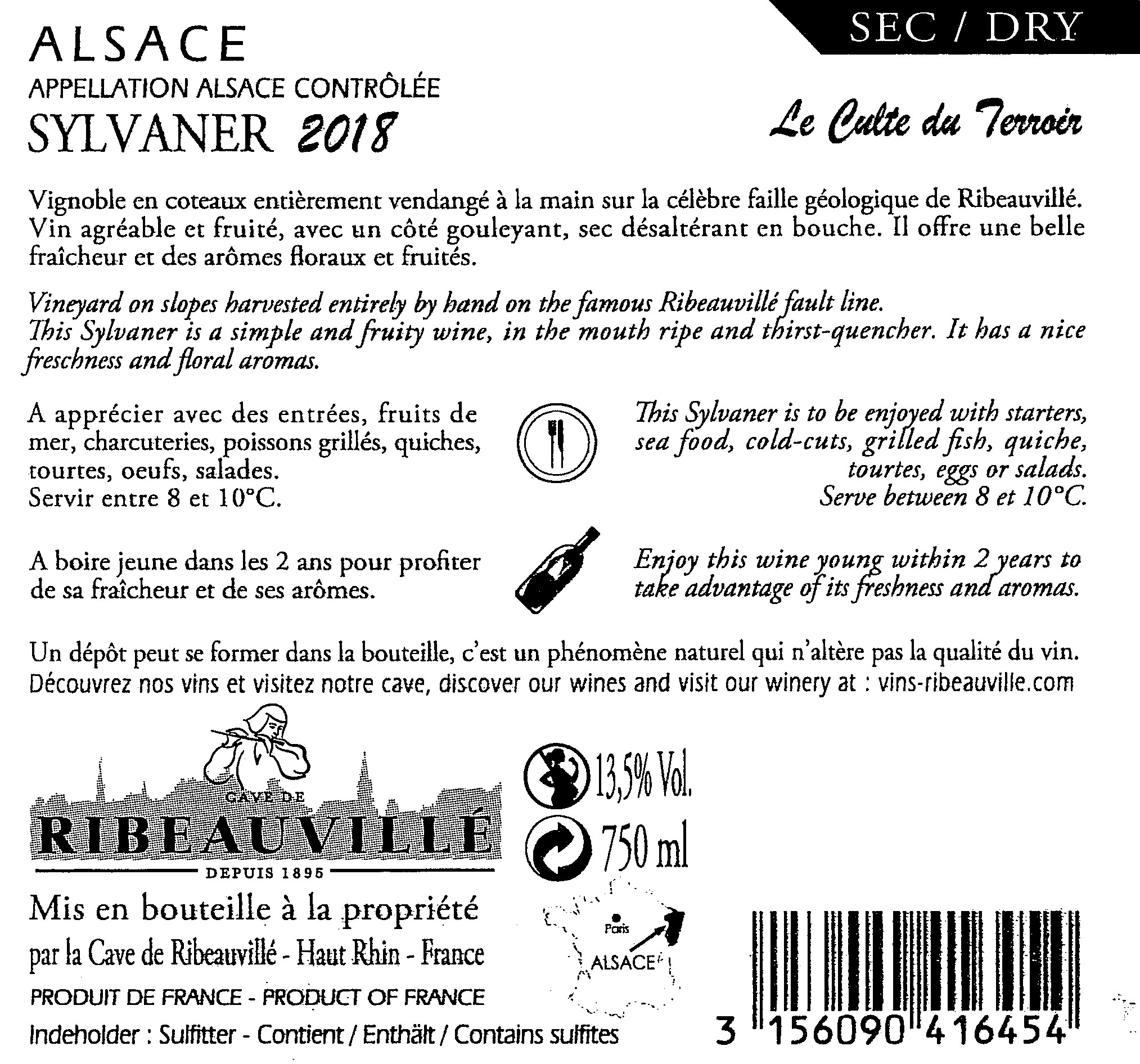Libellé Cave de Ribeauvillé Collection, 2018 - Alsace Sylvaner AOP - Blanc Sec - 75 cl
