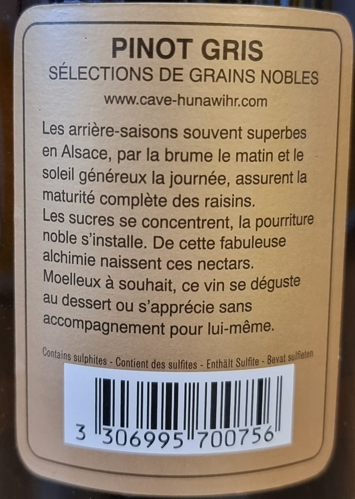 | Libellé | Cave Vinicole de Hunawihr - Pinot Gris, 2015 - Alsace AOP - Blanc - - 75 cl |