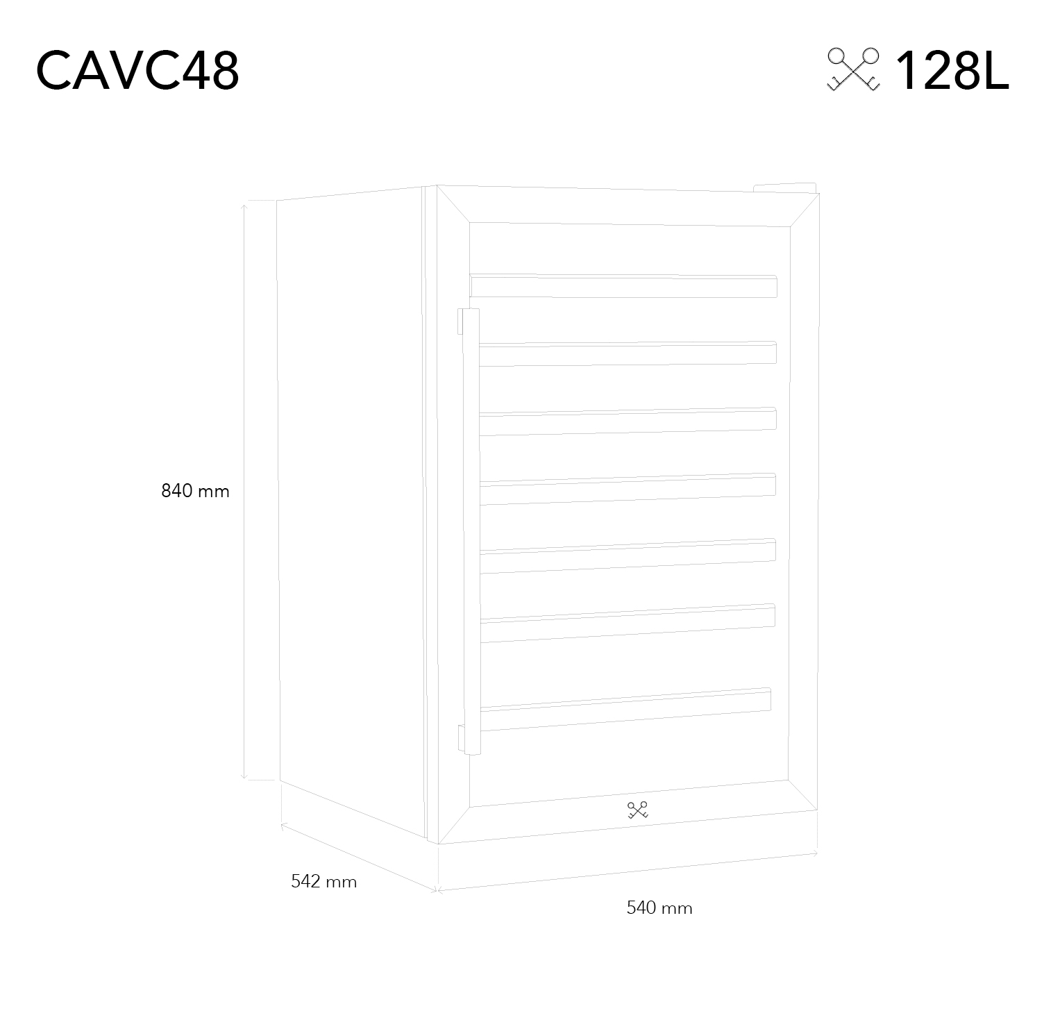 Cavist CAVC48. Placement de l'appareil: Pose libre, Couleur du boîtier: Noir, Acier inoxydable, Couleur intérieure: Noir. Capacité en bouteilles: 48 bouteille(s), Type de produit: Refroidisseur de vin thermoélectrique, Plage de températures (zone 1): 4 - 18 °C. Type de commande: Tactile, Type d'écran: LED, Position de l’écran: Sur la porte. Largeur: 538 mm, Profondeur: 540 mm, Hauteur: 834 mm. Largeur du colis: 580 mm, Profondeur du colis: 590 mm, Hauteur du colis: 850 mm