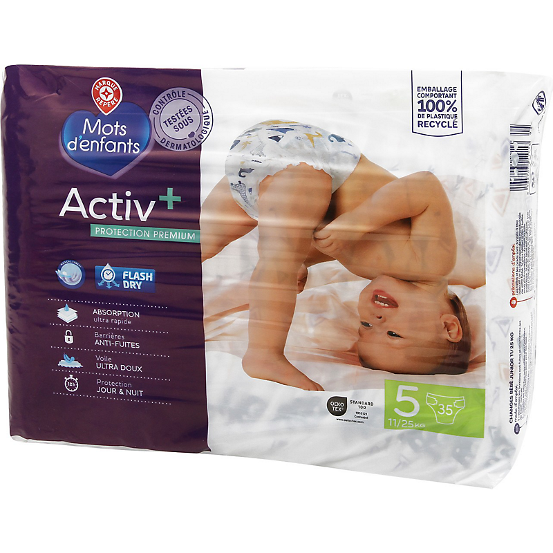 Plus libre dans ses mouvements ! Les couches Activ+ Mots d’Enfants sont spécialement développées pour répondre aux besoins de votre bébé. Elles apportent une protection maximale tout en garantissant une parfaite liberté de mouvement. Votre bébé pourra ainsi s’épanouir en toute liberté.