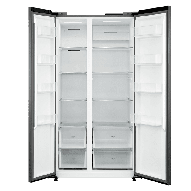 Cecotec 02389. Placement de l'appareil: Pose libre, Conception du produit: Américain, Couleur du produit: Argent. Capacité nette totale: 592 L, Classe climatique: SN-ST, Classe d'émission sonore: C. Capacité nette du réfrigérateur: 379 L, Type de lampe: LED. Capacité net du congélateur: 213 L, Emplacement du compartiment à glace: Placé latéralement, Capacité de congélation: 10 kg/24h. Classe d'efficacité énergétique: E, Consommation annuelle d'énergie: 332 kWh, Plage d’efficacité énergétique: A à G