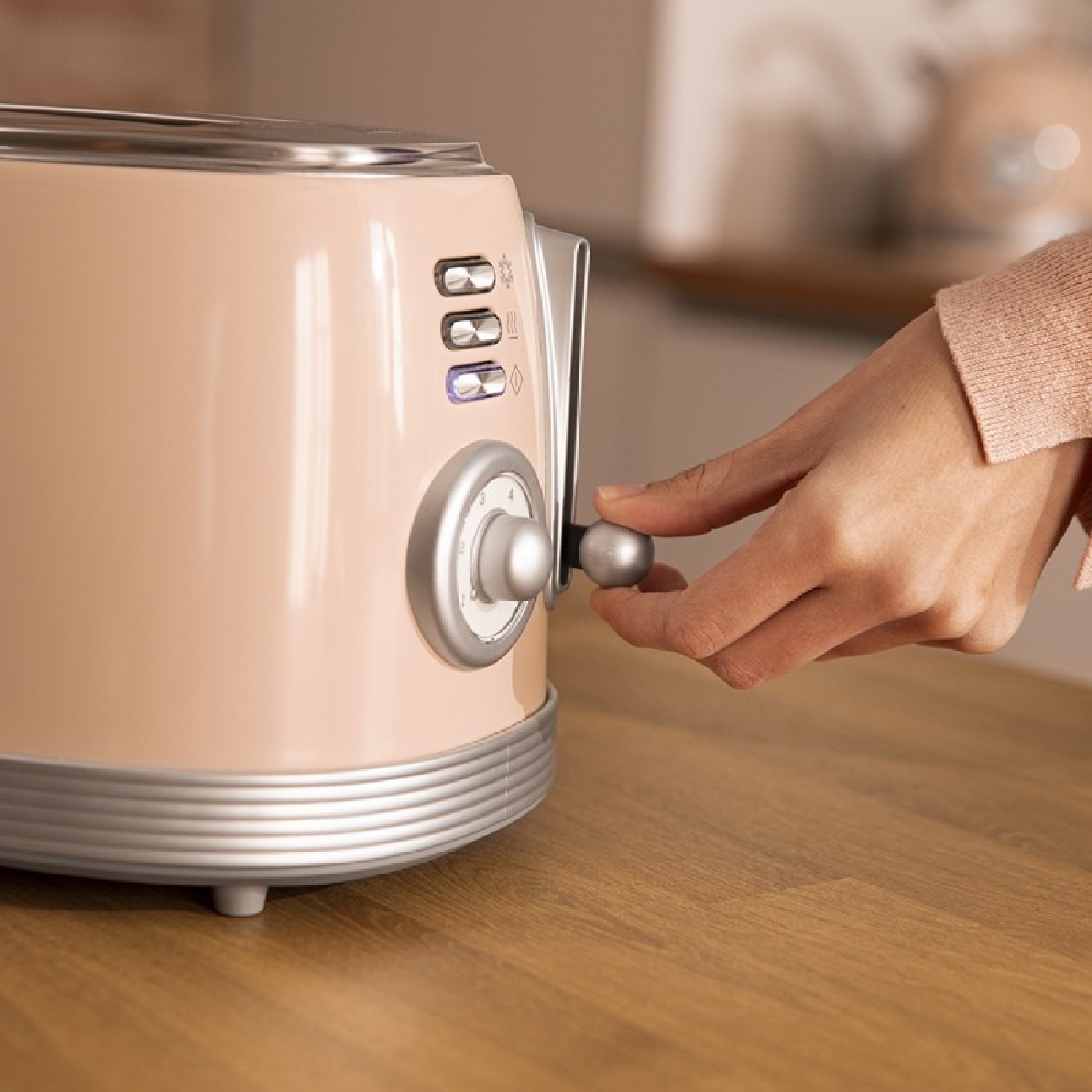 Grille-pain en acier avec 2 fentes courtes avec capacité pour 2 tranches de pain. Grille-pain double fente avec capacité pour 2 tranches et 850 W de puissance maximale. Les 2 fentes extra-larges (3,8 cm) permettent d’introduire différents types de pains épais ou de grande taille. Design élégant en acier inoxydable laqué beige et finition chromée. Le grille-pain possède 3 fonctions préconfigurées : Réchauffer, Décongeler et Annuler (cette dernière sert à interrompre le processus de grillage du pain lorsque vous le souhaitez). Contrôle du temps électronique et variable avec 6 niveaux de puissance pour ajuster le niveau de brunissage du pain. Système d’extra-élévation pour retirer facilement le pain, spécialement utile pour les petits morceaux de pain. Plateau ramasse-miettes facile à extraire pour un nettoyage rapide et facile. Témoin lumineux de fonctionnement. Système d’auto-centrage pour obtenir un pain grillé totalement uniforme des deux côtés. Base antidérapante et espace range-câbles. Grille-pain Manuel d’instructions .