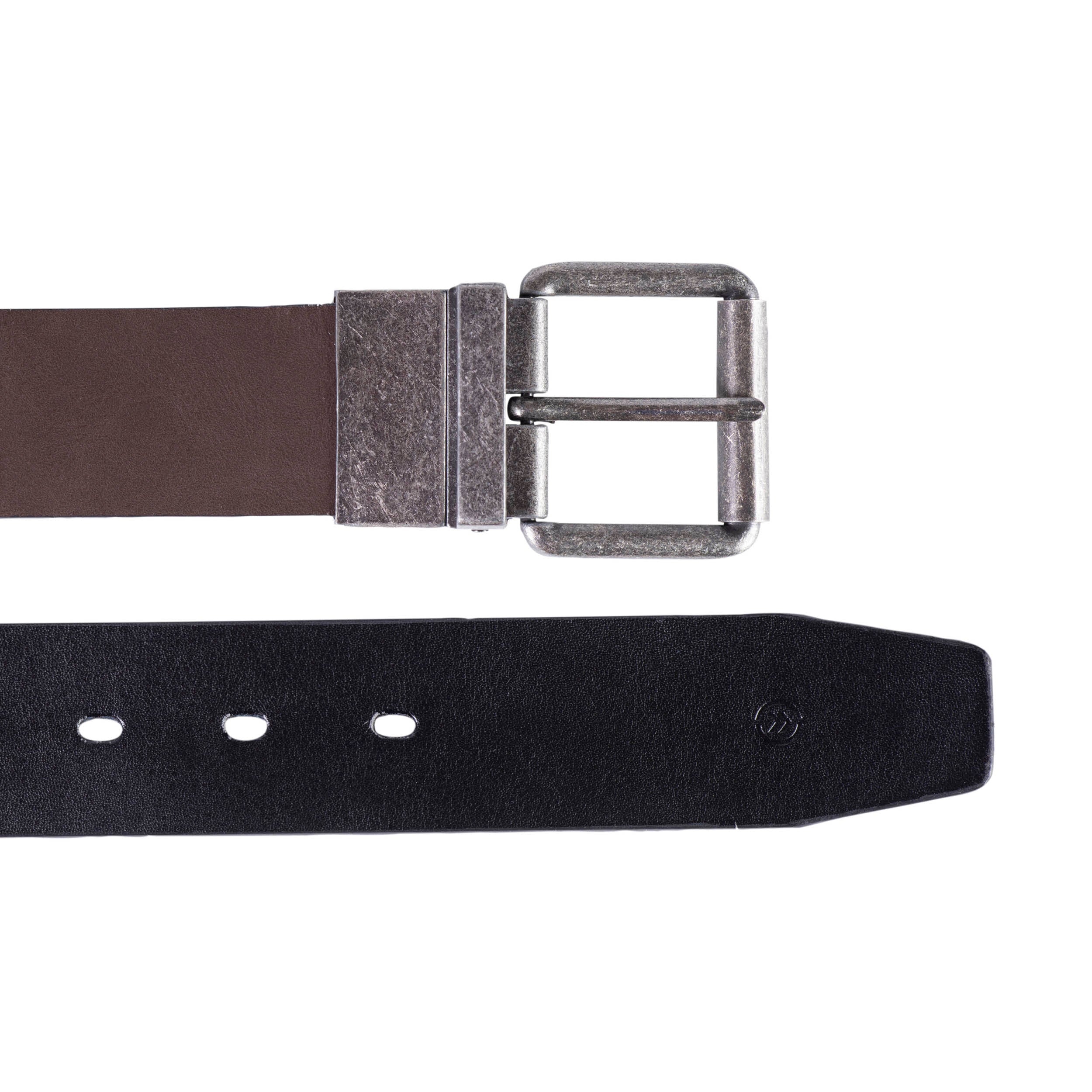 Isotoner propose une ceinture réversible et ajustable de qualité 100% en croute de cuir. Un modèle avec un effet usé, un côté noir et l'autre marron foncé et une largeur de ceinture de 4 cm. Réversible : Un système de boucle réversible et malin. Tirez légèrement sur la boucle pour la faire pivoter sur elle-même et changez de style en 1 clic. 2 styles / 2 ceintures en 1 ! Ajustable : Faites pivoter la boucle à 90° pour lever le clapet. Coupez la matière pour l'ajuster à votre convenance et reclipsez le tout.