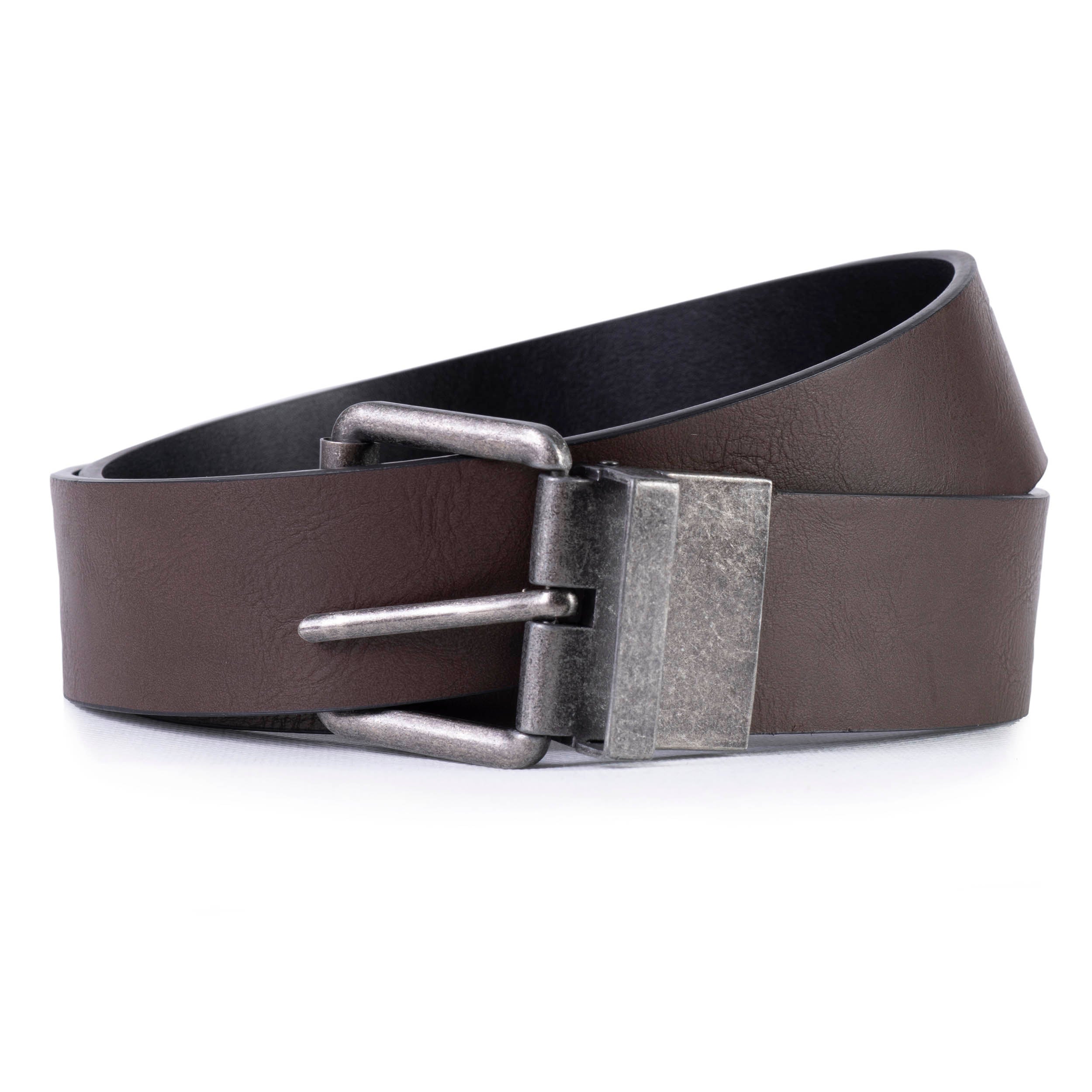 Isotoner propose une ceinture réversible et ajustable de qualité 100% en croute de cuir. Un modèle avec un effet usé, un côté noir et l'autre marron foncé et une largeur de ceinture de 4 cm. Réversible : Un système de boucle réversible et malin. Tirez légèrement sur la boucle pour la faire pivoter sur elle-même et changez de style en 1 clic. 2 styles / 2 ceintures en 1 ! Ajustable : Faites pivoter la boucle à 90° pour lever le clapet. Coupez la matière pour l'ajuster à votre convenance et reclipsez le tout.