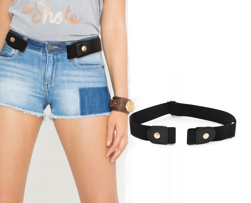 Libellé Ceinture élastique / ceinture sans boucle en cuir PU Noir 3 cm