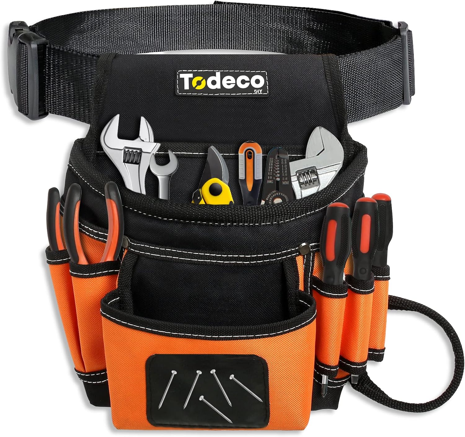 La ceinture porte-outils dispose de plusieurs poches pour organiser et ranger différents types d'outils que vous souhaitez garder avec vous. Les poches sont solides et profondes, garantissant que vos outils resteront en sécurité si vous les placez correctement.