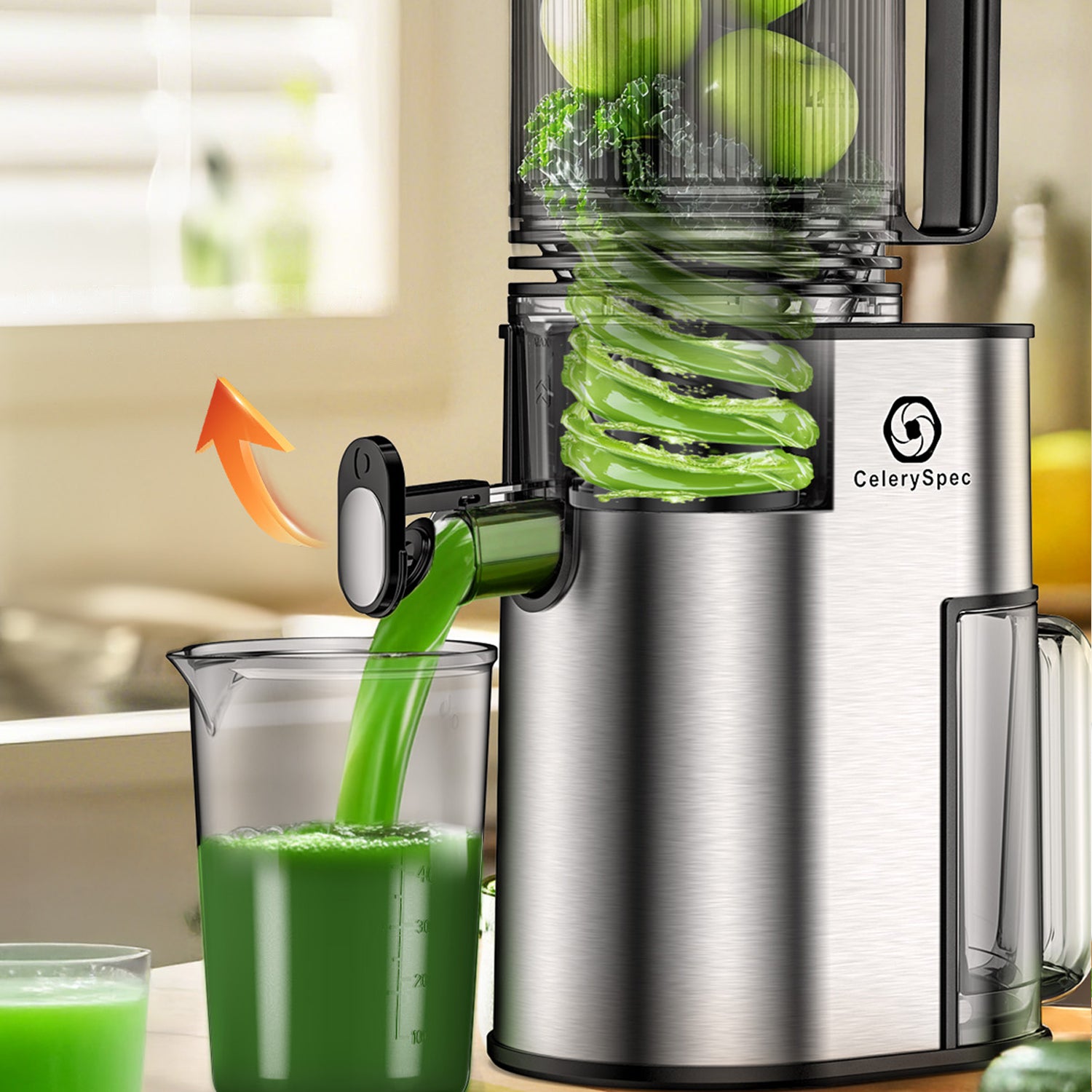 CelerySpec SJ-048-EU-SS Extracteur de jus - 250W Puissance 1.8L Capacity Deux ouvertures Silencieux - Ar