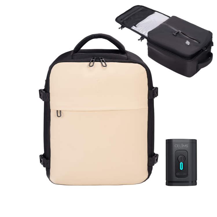 CELIMS France - Sac à dos sous vide avec Pompe Air | Bagage à Main 40x30x20cm | Imperméable | Beige