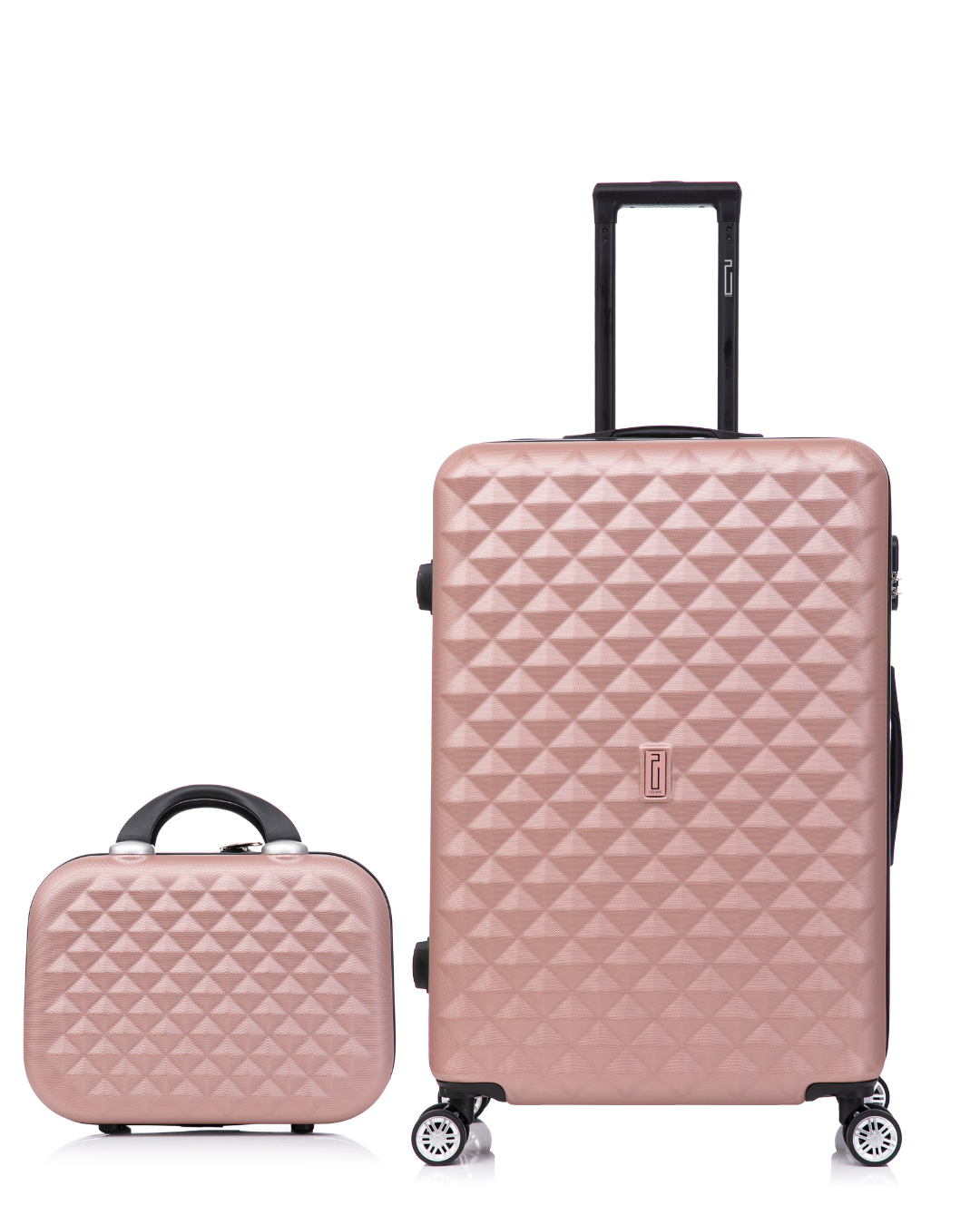 | Libellé | CELIMS FRANCE - Set Valise 2 Pièces Valise avec Vanity | Valise Grande Taille | 75cm 23kg | 4 Roulettes 360 | Rose Gold |