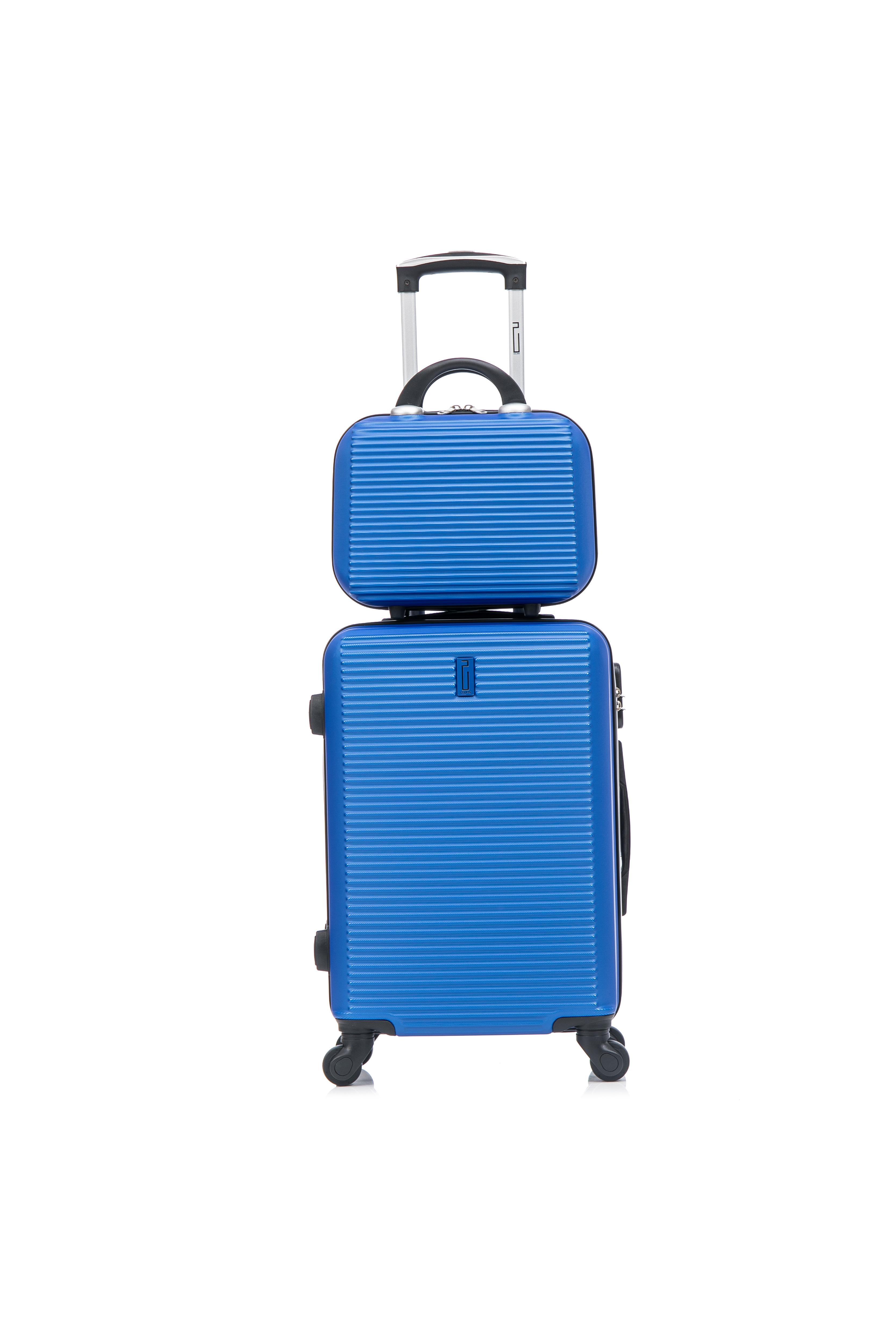 Marque Française - Valise taille cabine accompagné d'un vanity de 15 pouces, vous pourrez faire votre rangement en toute tranquillité. Les dimensions de la valise taille cabine H55 x L34 x P20 (33L) Le vanity H 25 x L33 x P14 (12L) La valise taille cabine accepté par les compagnies aériennes low cost. Mesure EXACTEMENT la Taille MAXIMUM Autorisée Avec sa matière rigide elle fait preuve de sa solidité Cadenas à code Quatre roues multidirectionnelles Séparateur zippé + sangles Bras télescopique 2 poignées