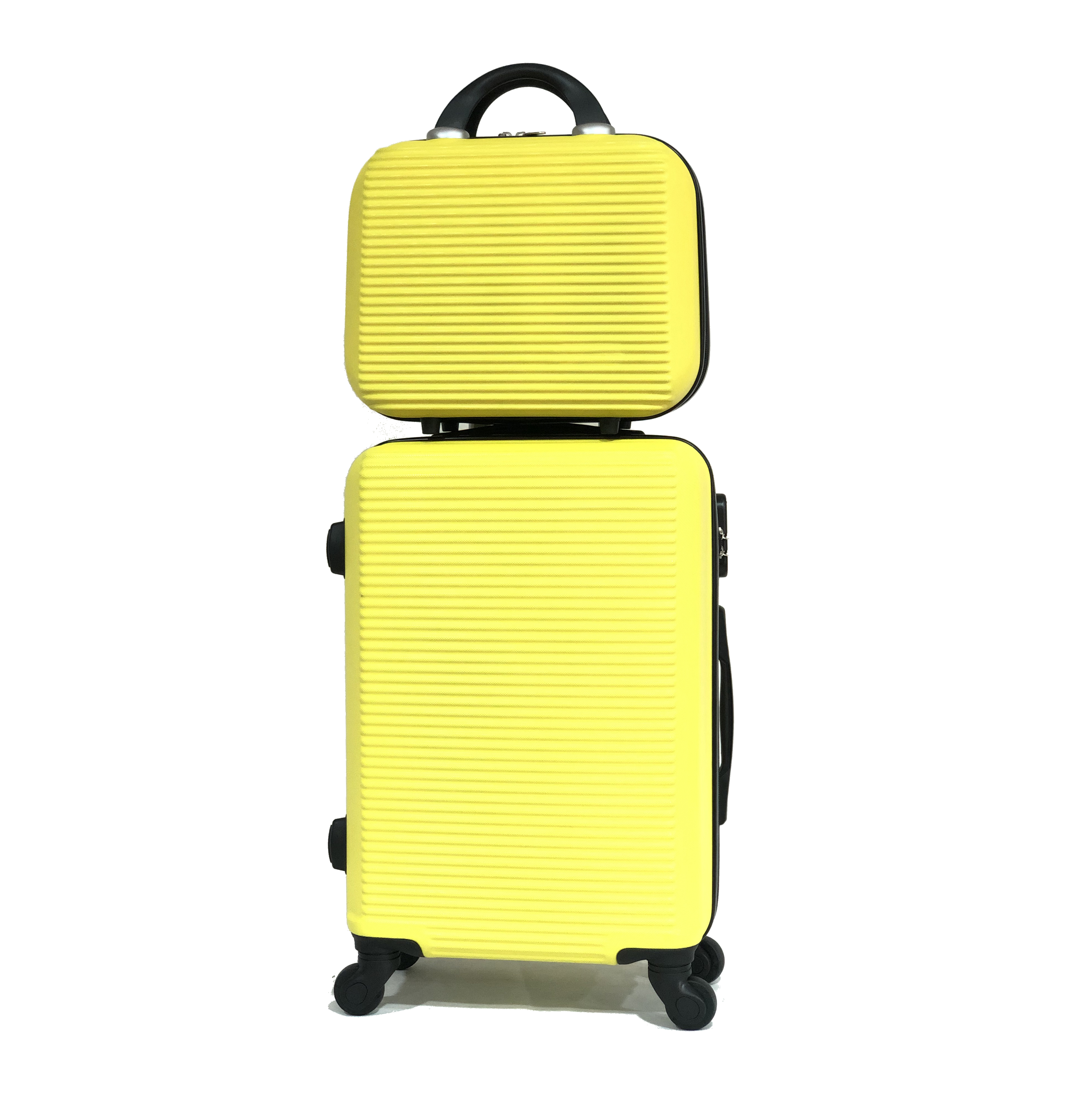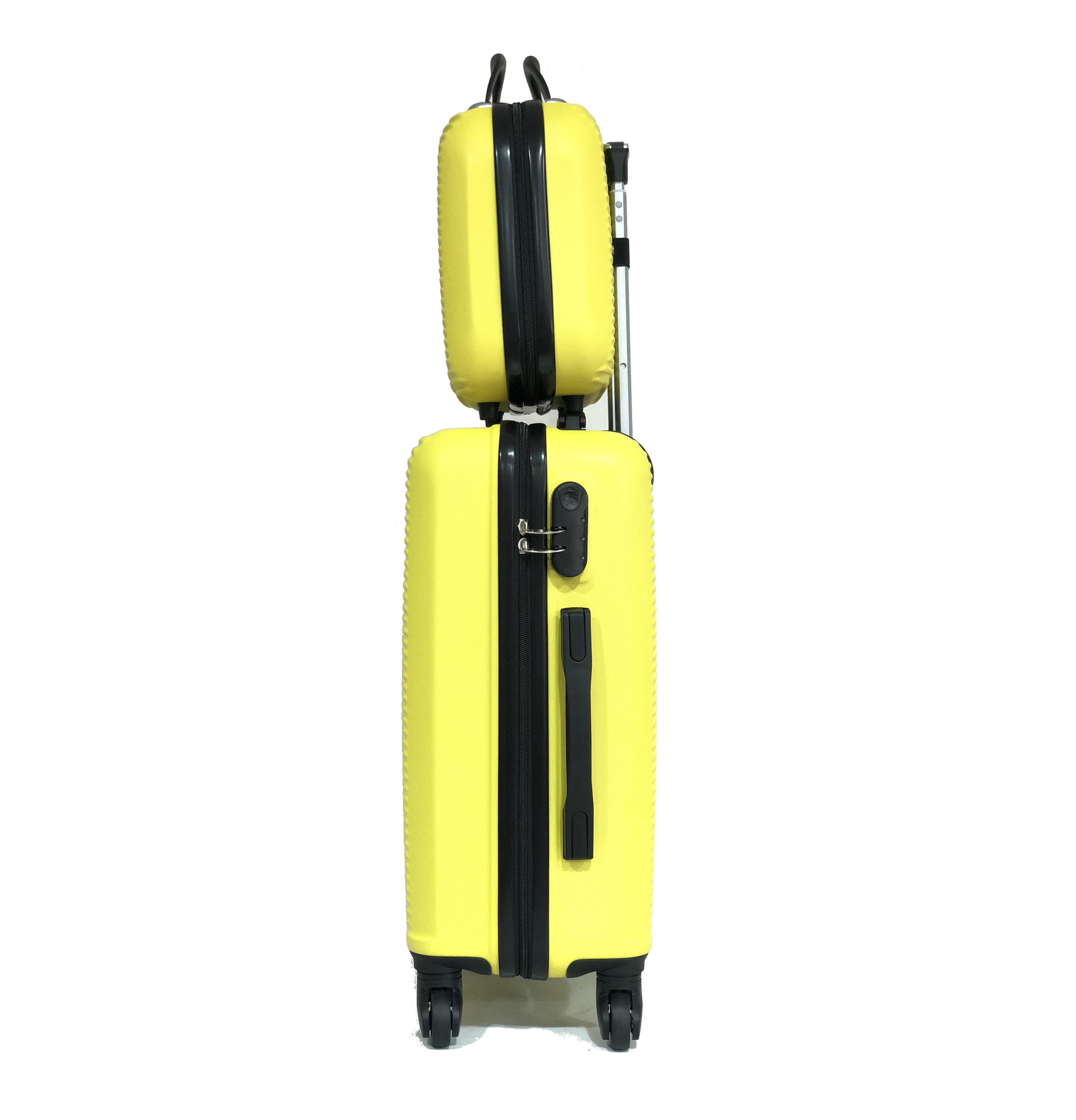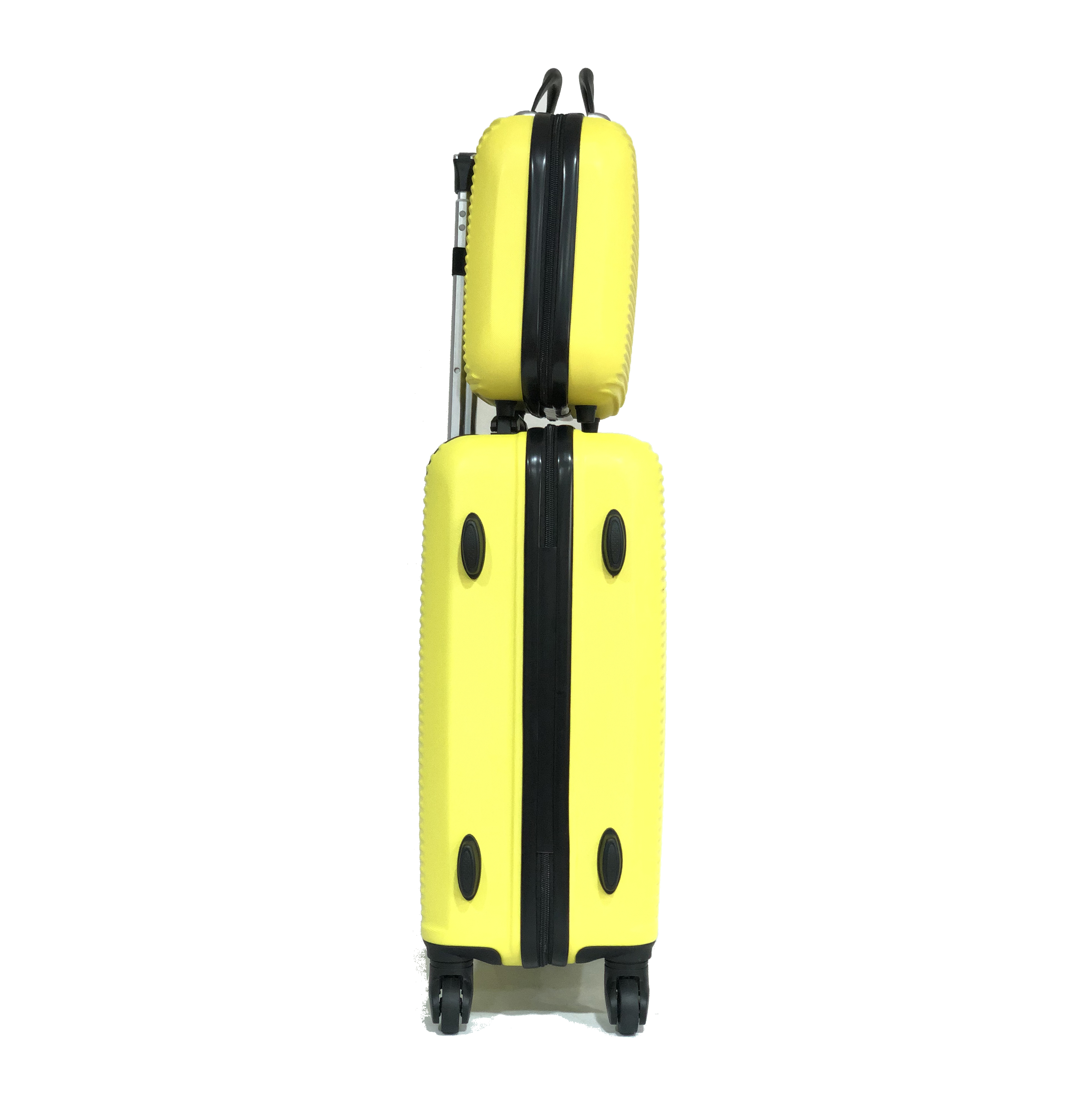 | Libellé | CELIMS FRANCE – Valise Cabine + Vanity | Bagage Cabine + Vanity | Taille 55cm 10kg | Serrure intégré | ABS | 4 Roulettes 360 | Jaune |