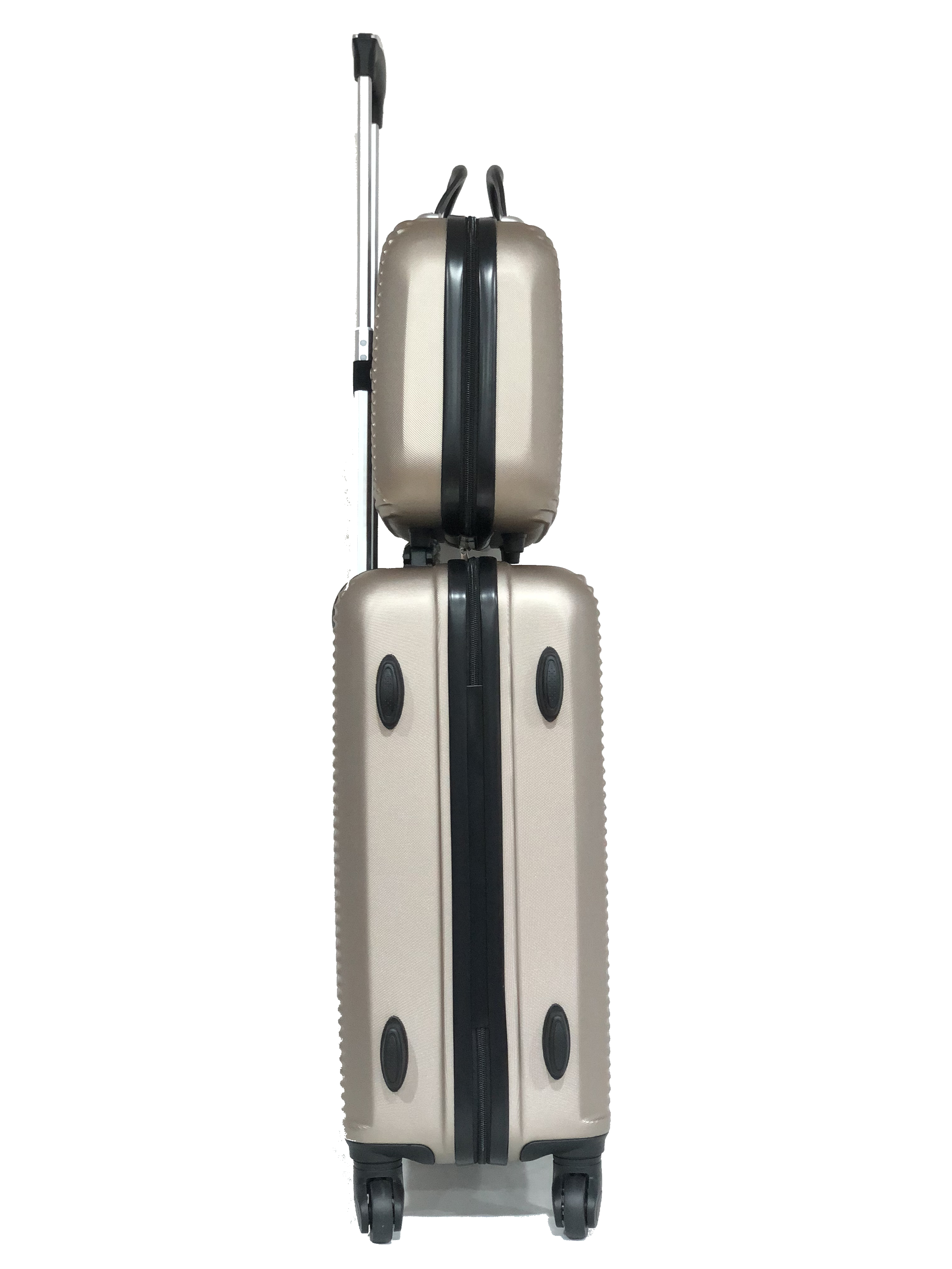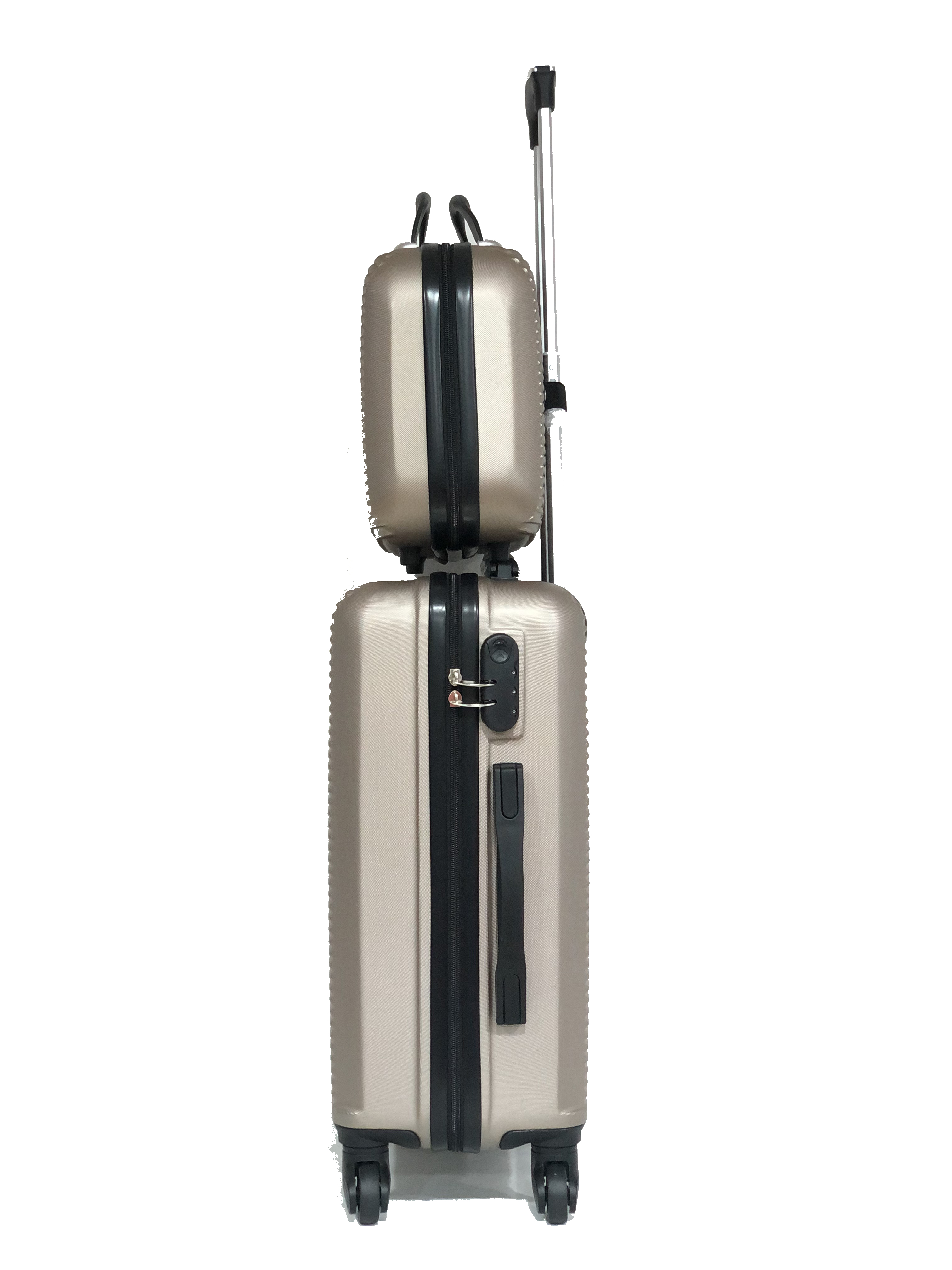 | Libellé | CELIMS FRANCE – Valise Cabine + Vanity | Bagage Cabine + Vanity | Taille 65cm 20kg | Serrure intégré | ABS | 4 Roulettes 360 | Champagne |