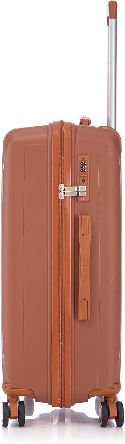 | Libellé | CELIMS - Valise Moyenne en Polypropylène | Modele 2025 | Taille 65cm 20kg | Serrure TSA | 8 Roulettes 360 | Marron |