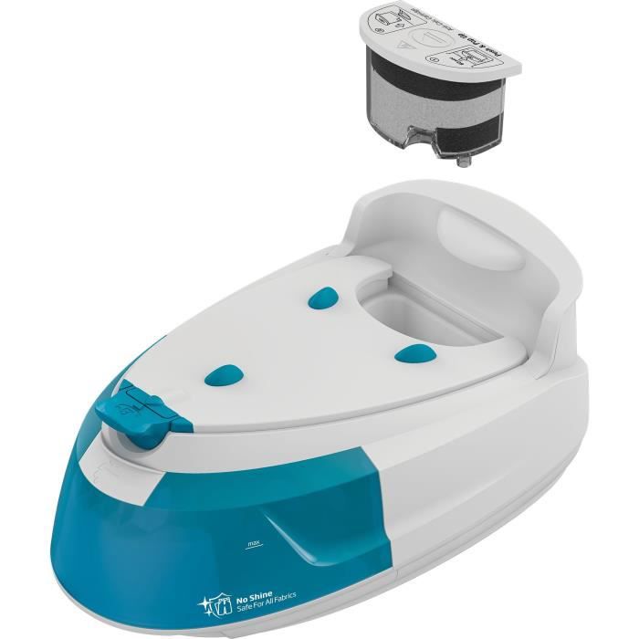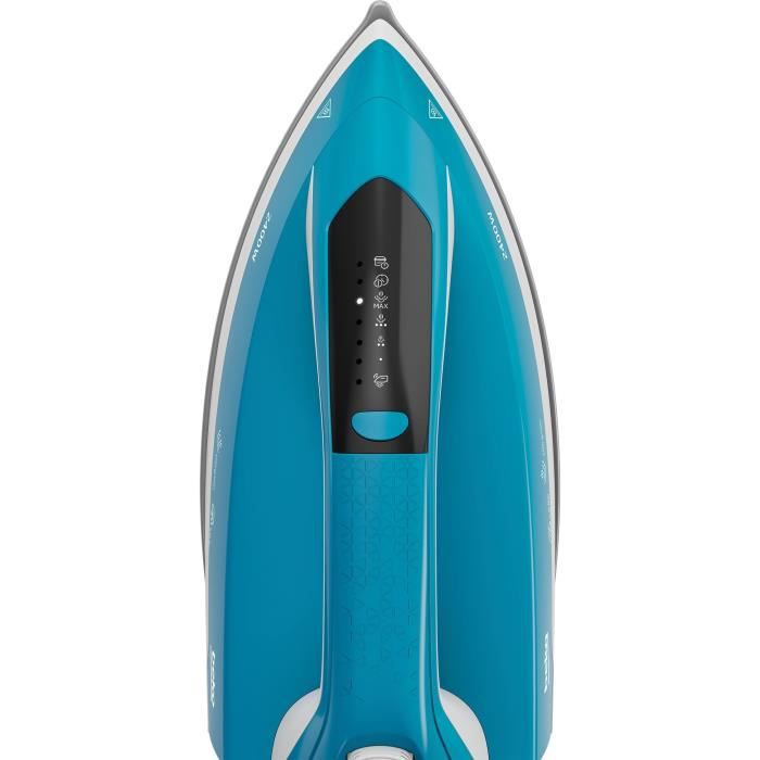 Centrale vapeur SteamXtra (TM) SmartStation(TM) - 5,8 bars de pression - Vapeur continue 100 g/min - Effet pressing 200g/min - 2400 W - Smart mode : Réglage 1 bouton - Chauffage en 1 minute - Réservoir 1L détachable - Semelle SteamXtra(TM) - Cartouche anticalcaire - Arret automatique - Câble électrique de 1,9 m - Tuyau de vapeur de 1,8 m - Format compact - Facile a transporter avec verrouillage du fer - Bleu Turquoise